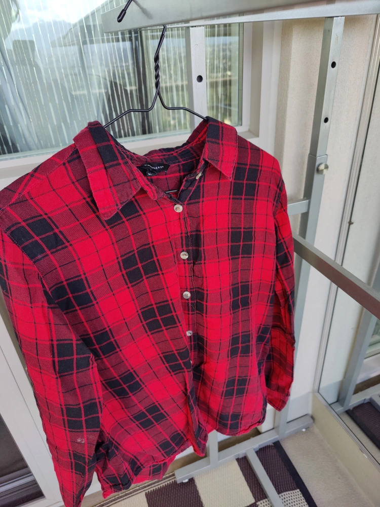 3️⃣ Red/Black Plaid Shirt – $7