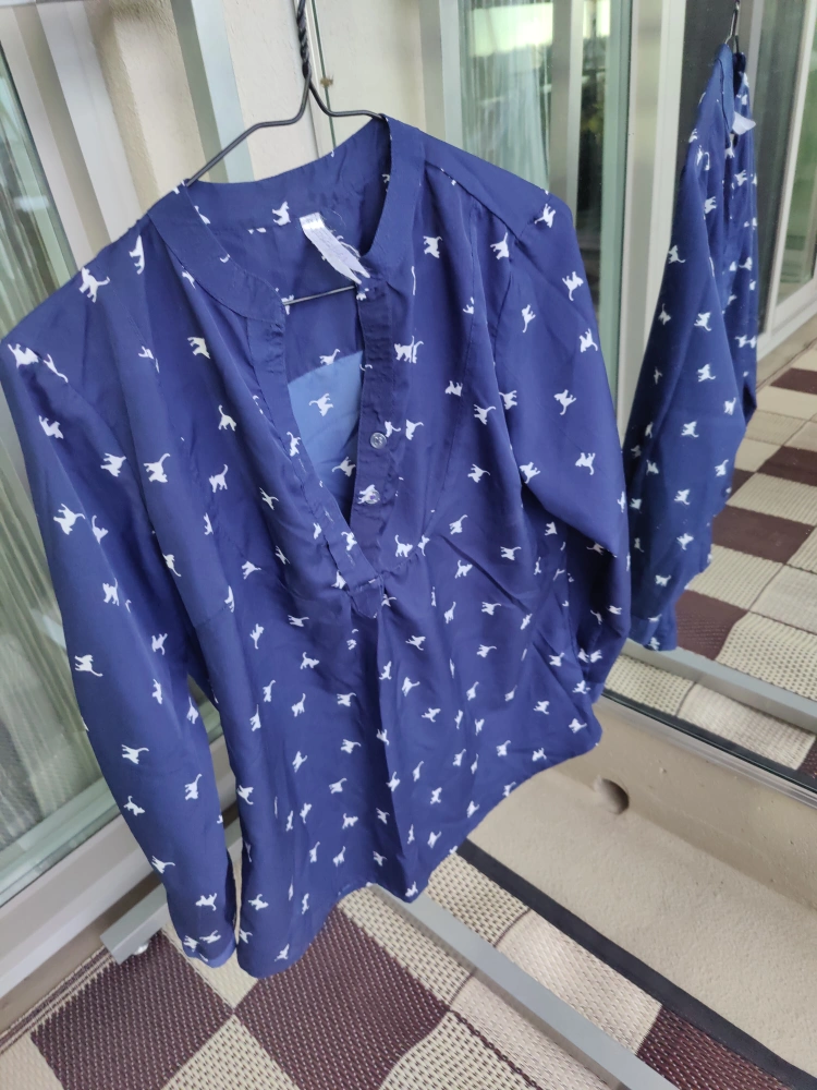 5️⃣ Navy Blouse w/ White Bird Print – $7