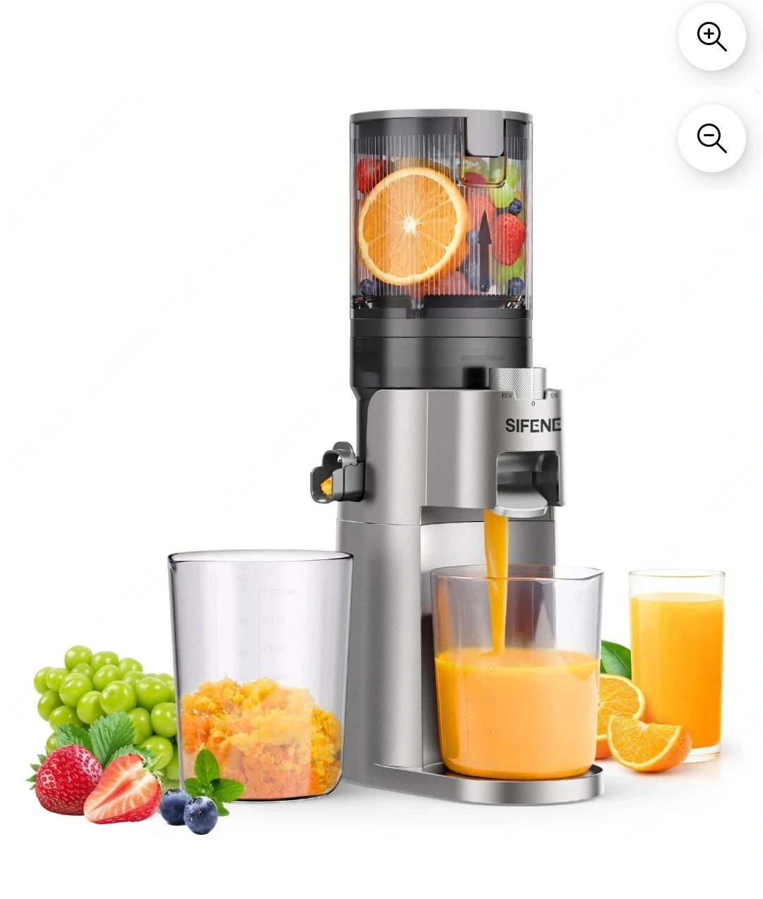 Make delicious and healthy juice with this Sifene juicer. It's designed for efficient extraction of fruit and vegetable juices. Includes a pulp bin and juicing cup.