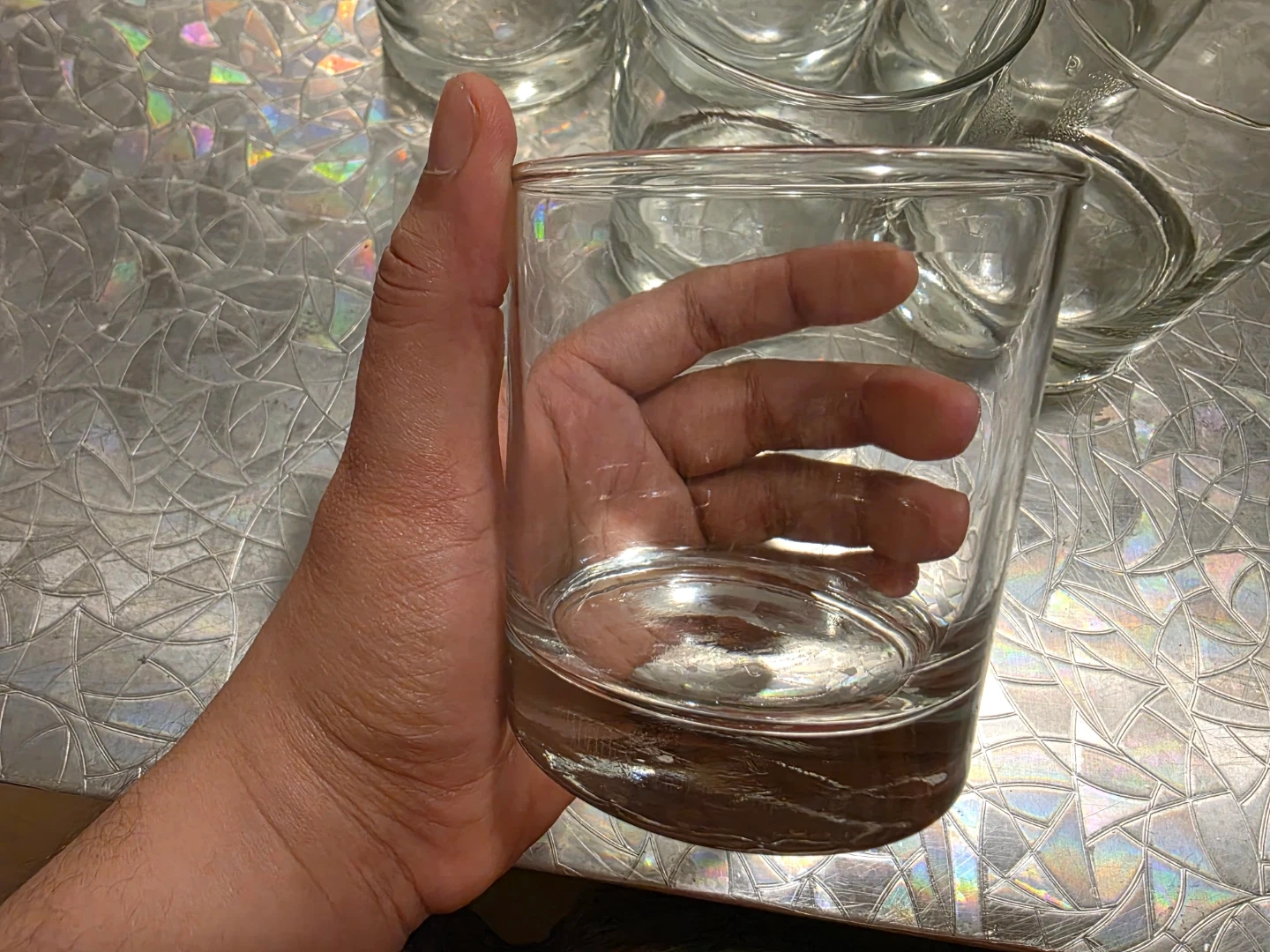 This is a set of six glass mugs with handles. Each mug has "Open your mind" printed on it along with measurements for 50ml, 70ml, 100ml, and 120ml. They're perfect for serving small beverages or as unique shot glasses!