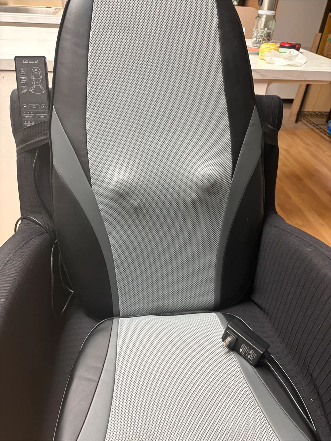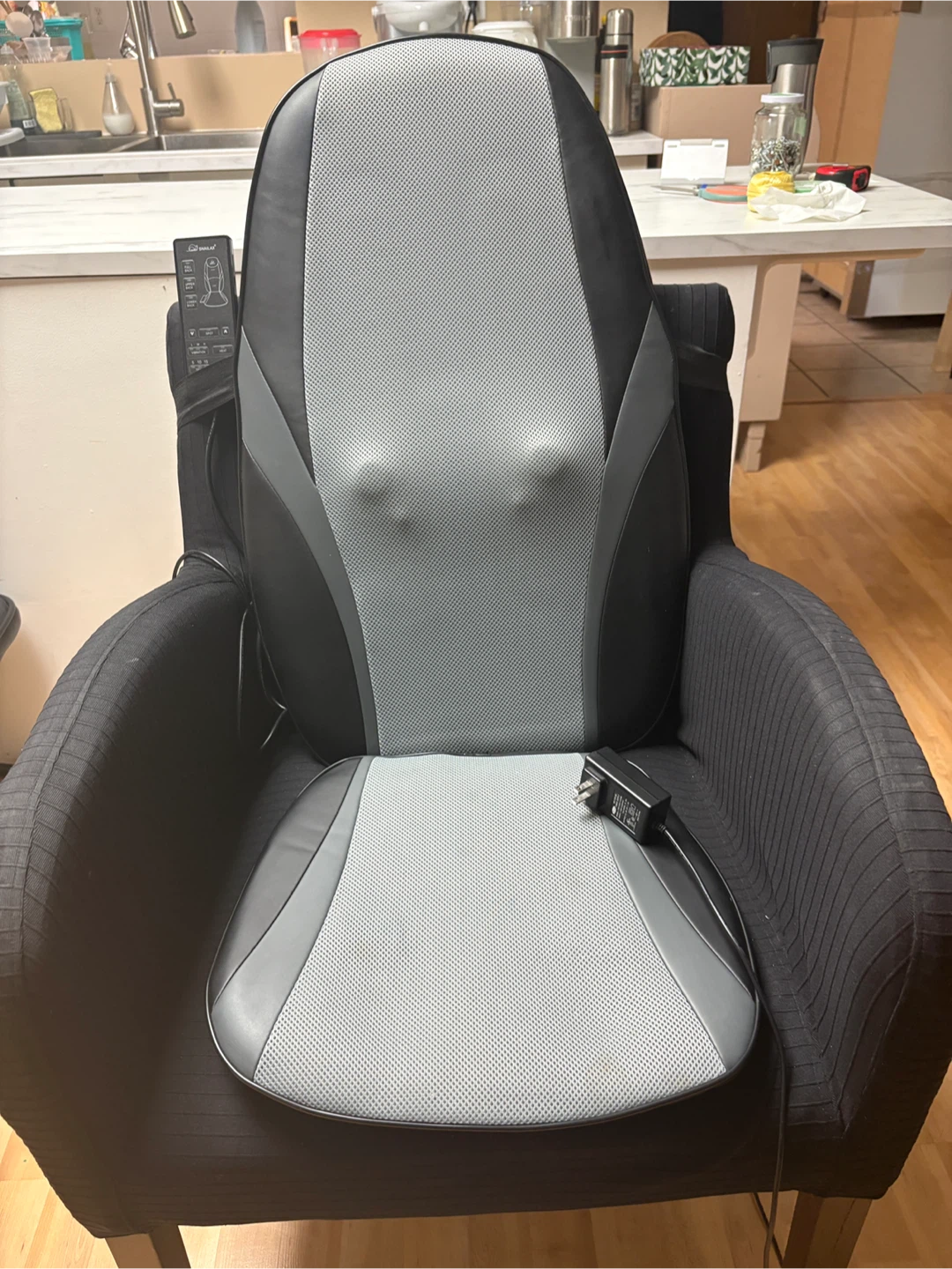This Shiatsu massage cushion provides a deep kneading massage for your back. It's designed for comfort and features multiple massage nodes. Includes a remote control and power adapter for easy operation.