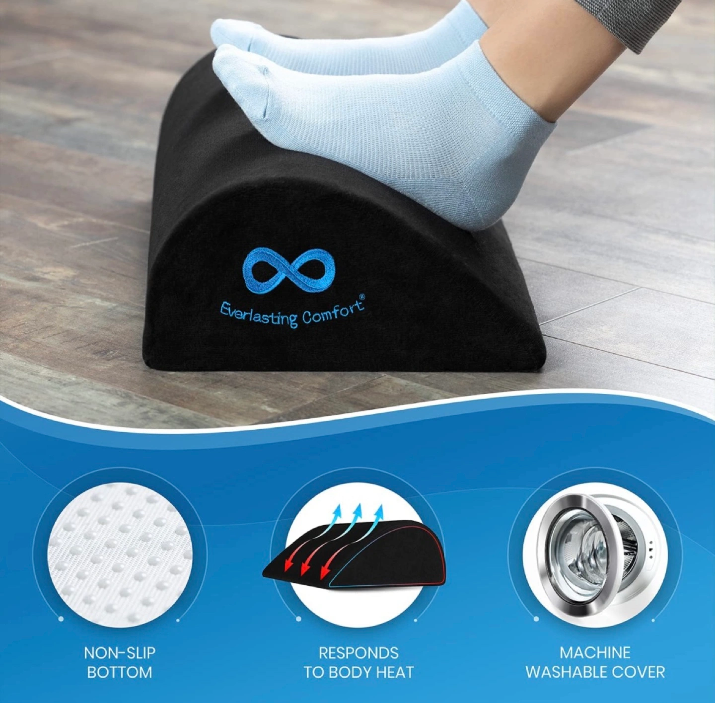 Everlasting Comfort Office Foot Rest for Under Desk - Ergonomic Cooling Gel (Black)