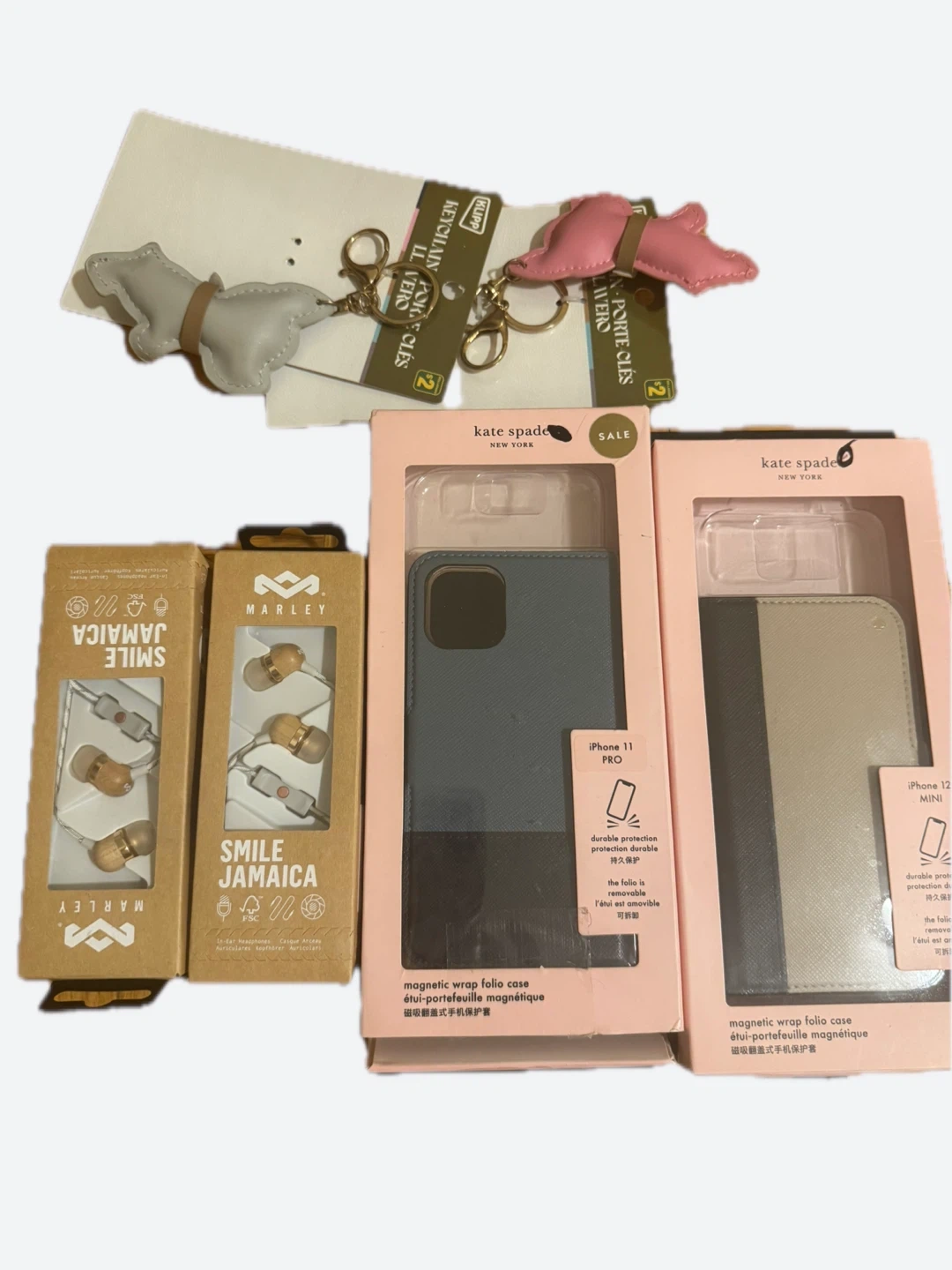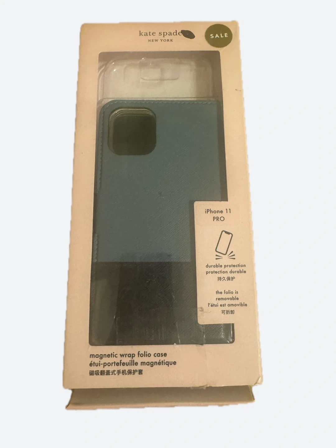 Two Kate Spade magnetic wrap folio cases are available, one for iPhone 11 Pro and another for iPhone 12 Mini. The folio is removable for durable protection. Get one for your phone!