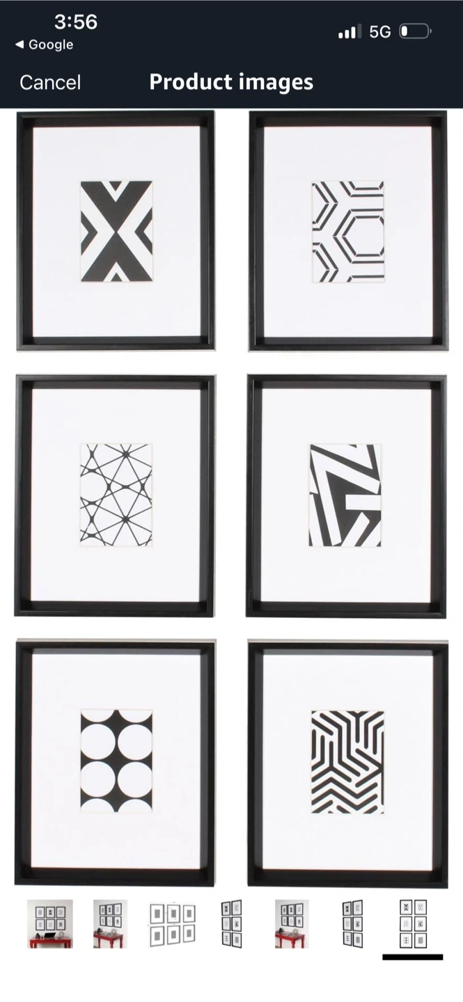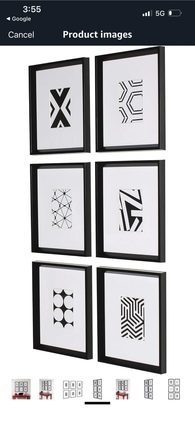 New Set of 6 Black Picture Frames with Abstract Art