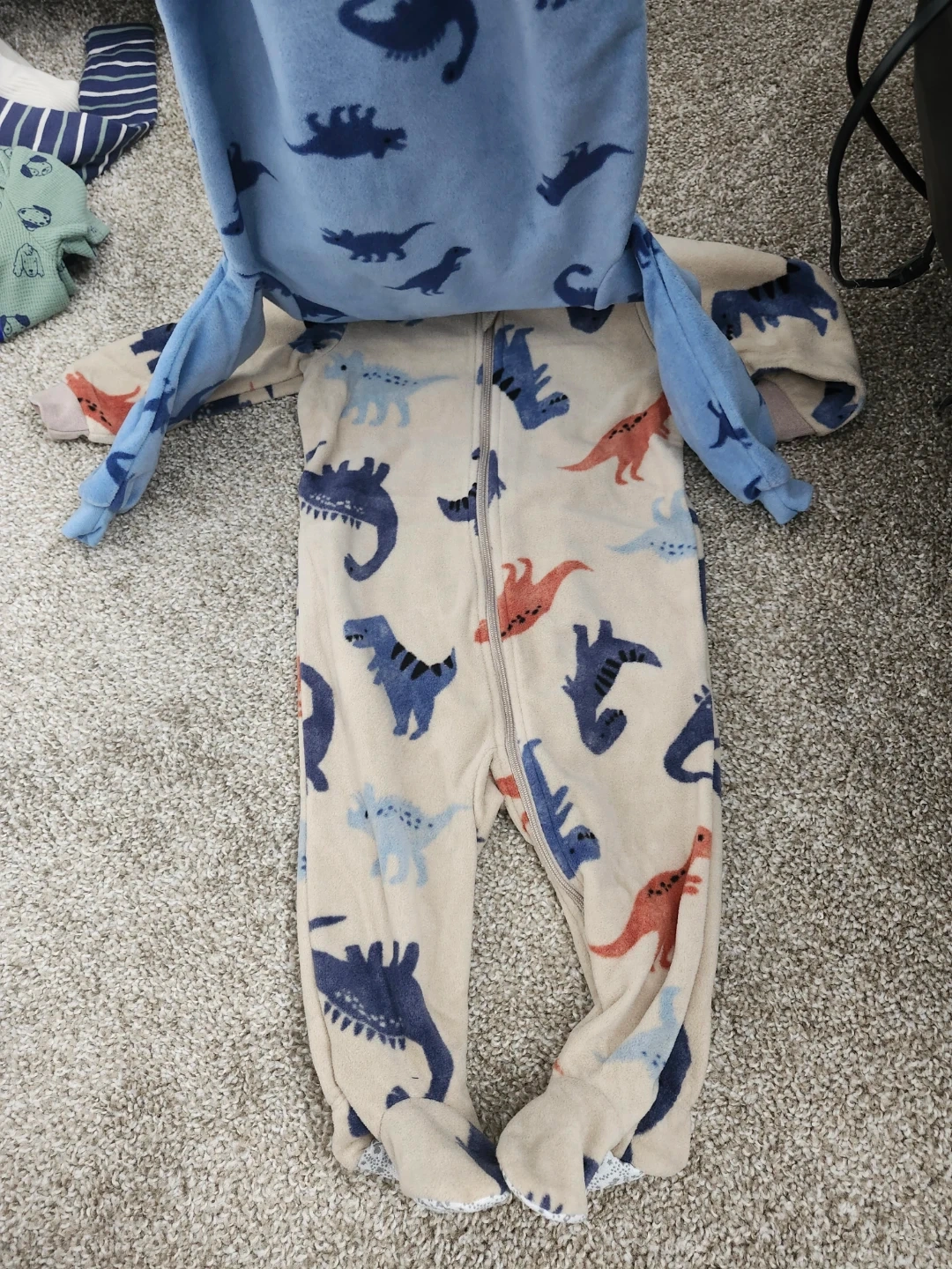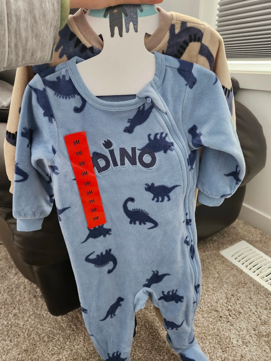 Cute blue dinosaur print fleece sleepers for Brand new with tags! Never worn or washed.