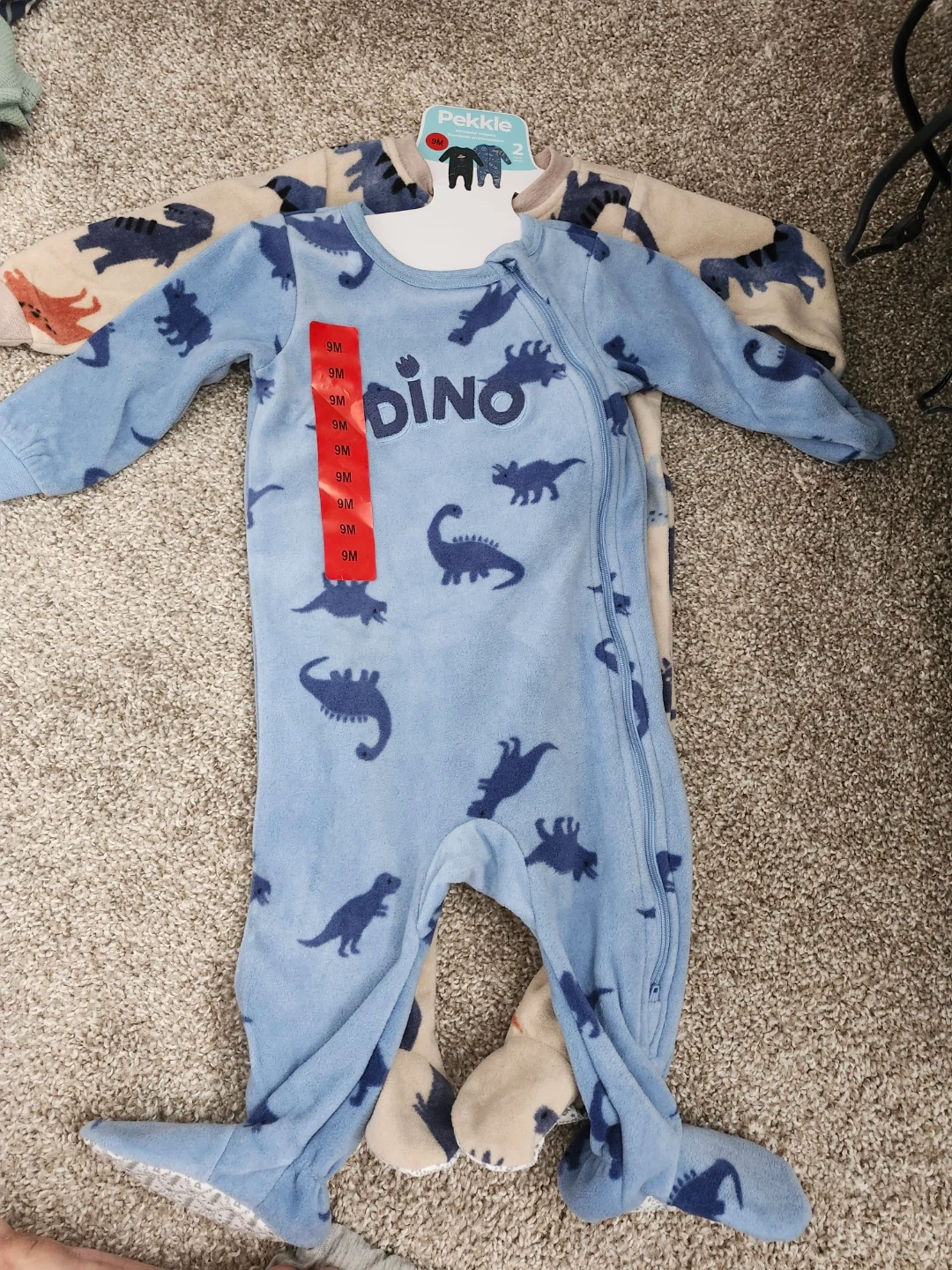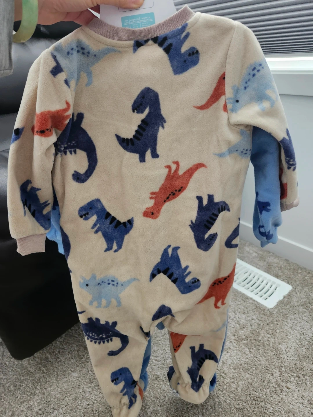 Cute blue dinosaur print fleece sleepers for Brand new with tags! Never worn or washed.