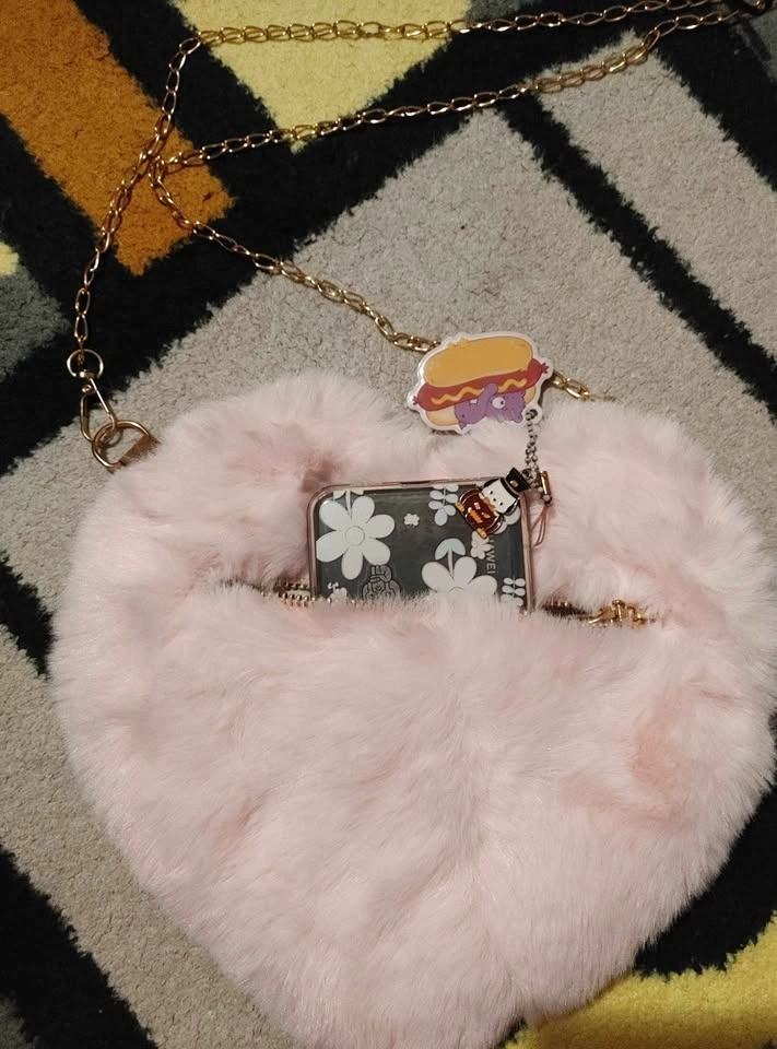 Brand new pink shaped heart decorative bag. The opening is in the front only and you can put smaller items and possibly a smaller flip phone. Chain can be adjusted with the clip. Cell phone shown for reference to size. Pick up near Killarney Community Center.