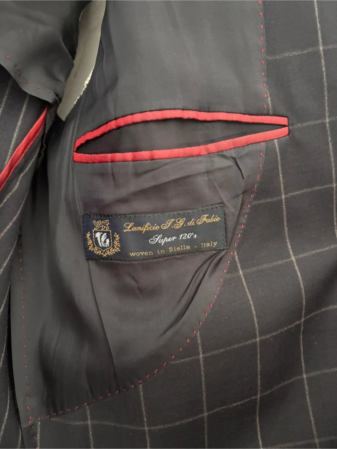 A SARAR Platinum blazer. Woven in Biella, Italy. This jacket is designed for a sharp, tailored look. Perfect for business or formal occasions.