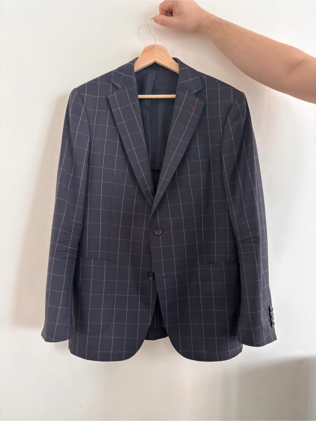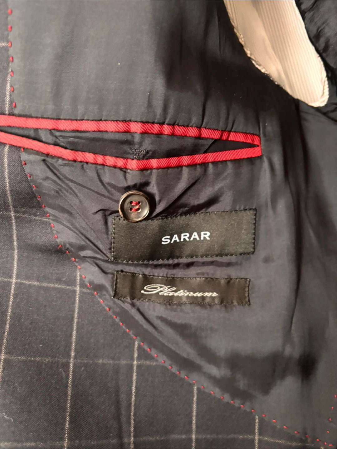 A SARAR Platinum blazer. Woven in Biella, Italy. This jacket is designed for a sharp, tailored look. Perfect for business or formal occasions.