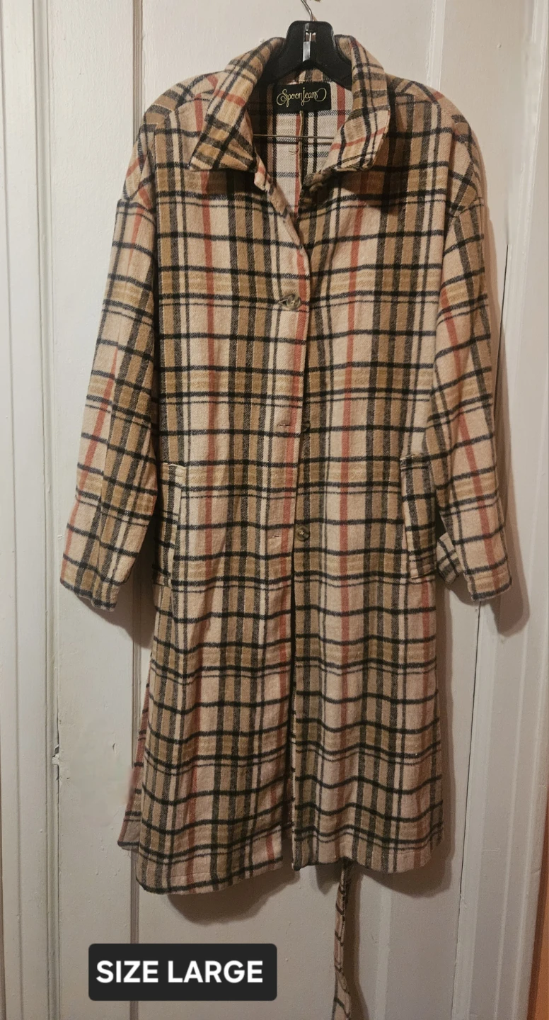 Women long coat. Size Large. Side pockets. Brand: Spoon Jeans. Excellent Condition. Like New.