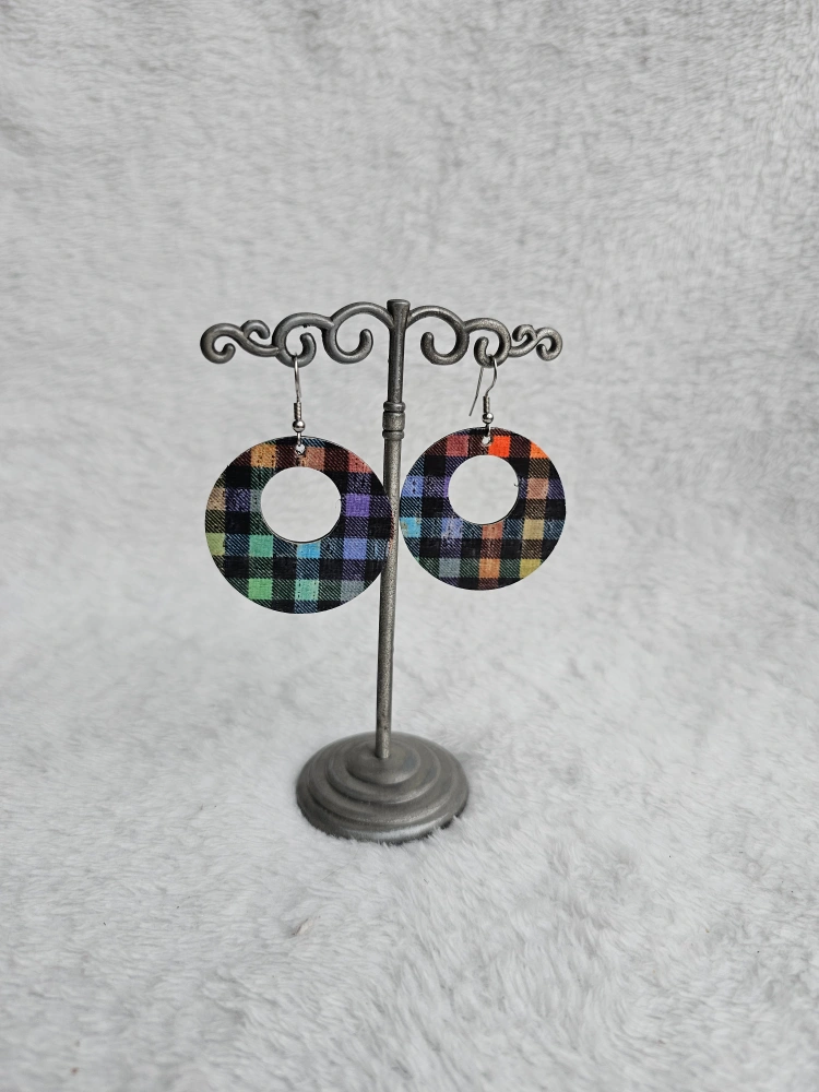 Cute and fun, these artisinal handcrafted gradient gingham (fancy way of saying multicolour plaid anyone?) circle cutout earrings featuring the colours of the rainbow 🌈 Add some colour to your spring outfits !!