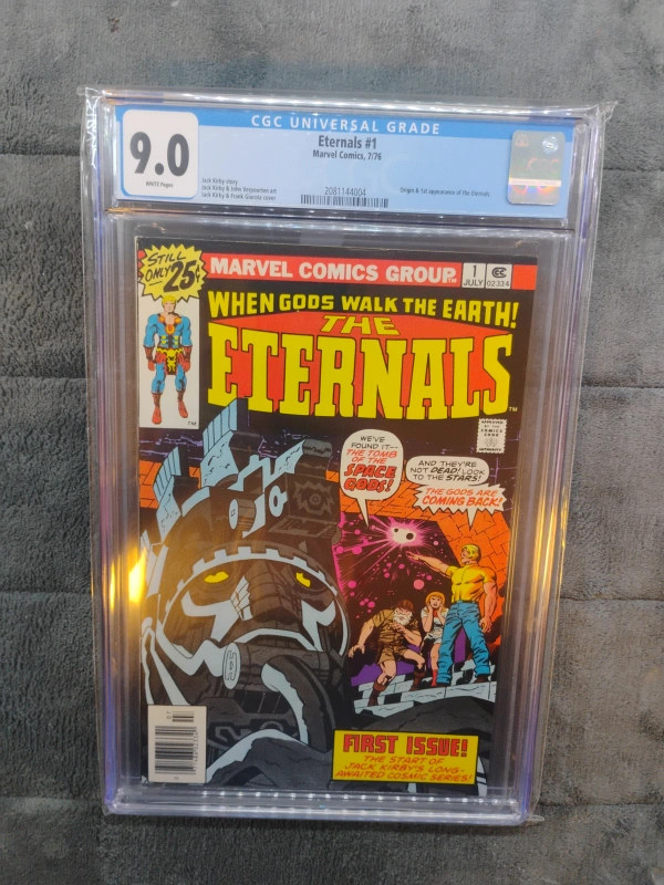 104Selling a CGC Universal Grade 9.0 copy of Eternals #1, Marvel Comics, July 1976 issue. This comic features the origin and 1st appearance of the Eternals. A great addition to any comic book collection!