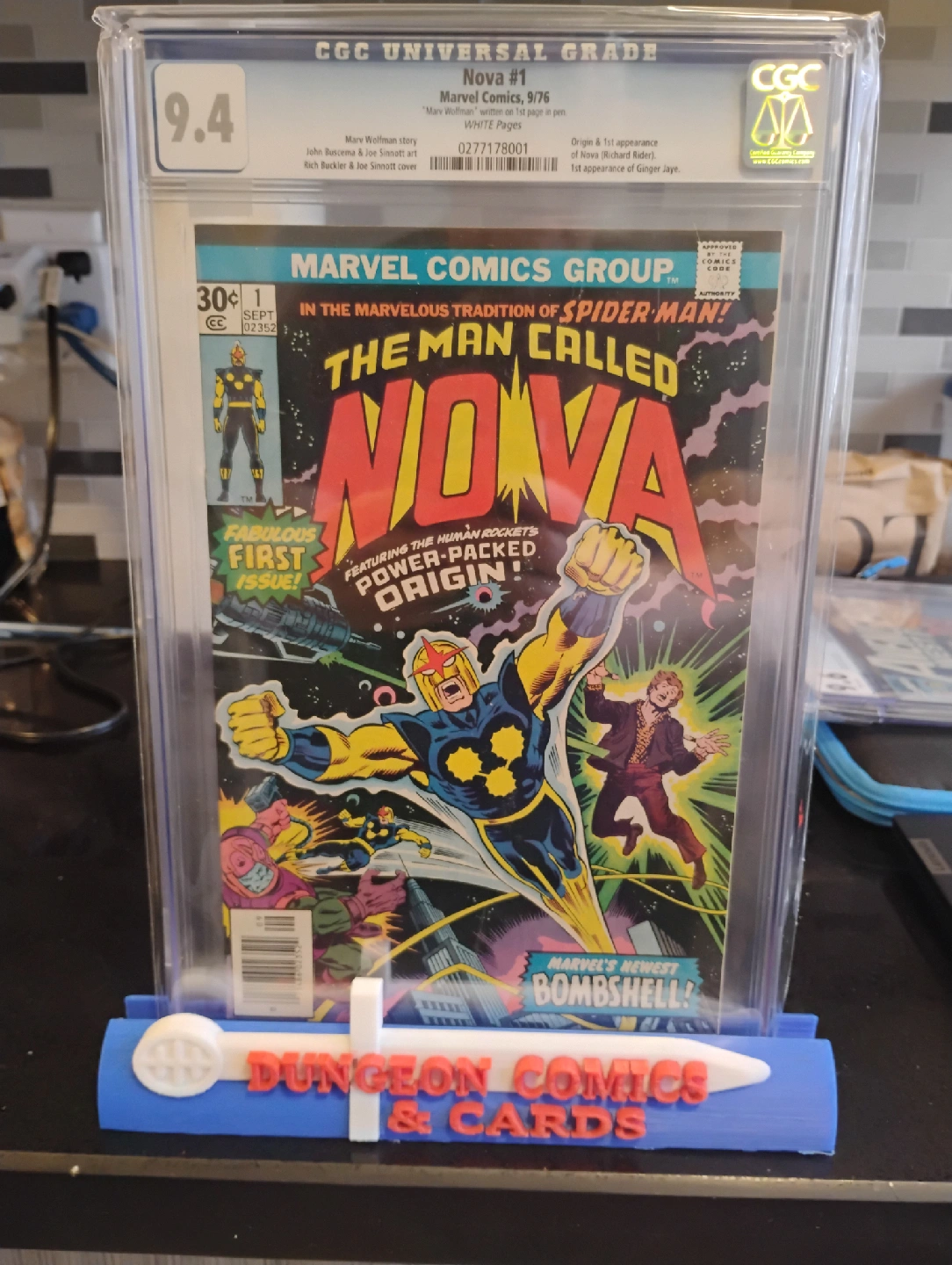104Selling a CGC graded 9.4 copy of Nova #1 from Marvel Comics, September 1976! This comic features the origin and first appearance of Nova (Richard Rider) and the first appearance of Ginger Jaye. A fabulous first issue!