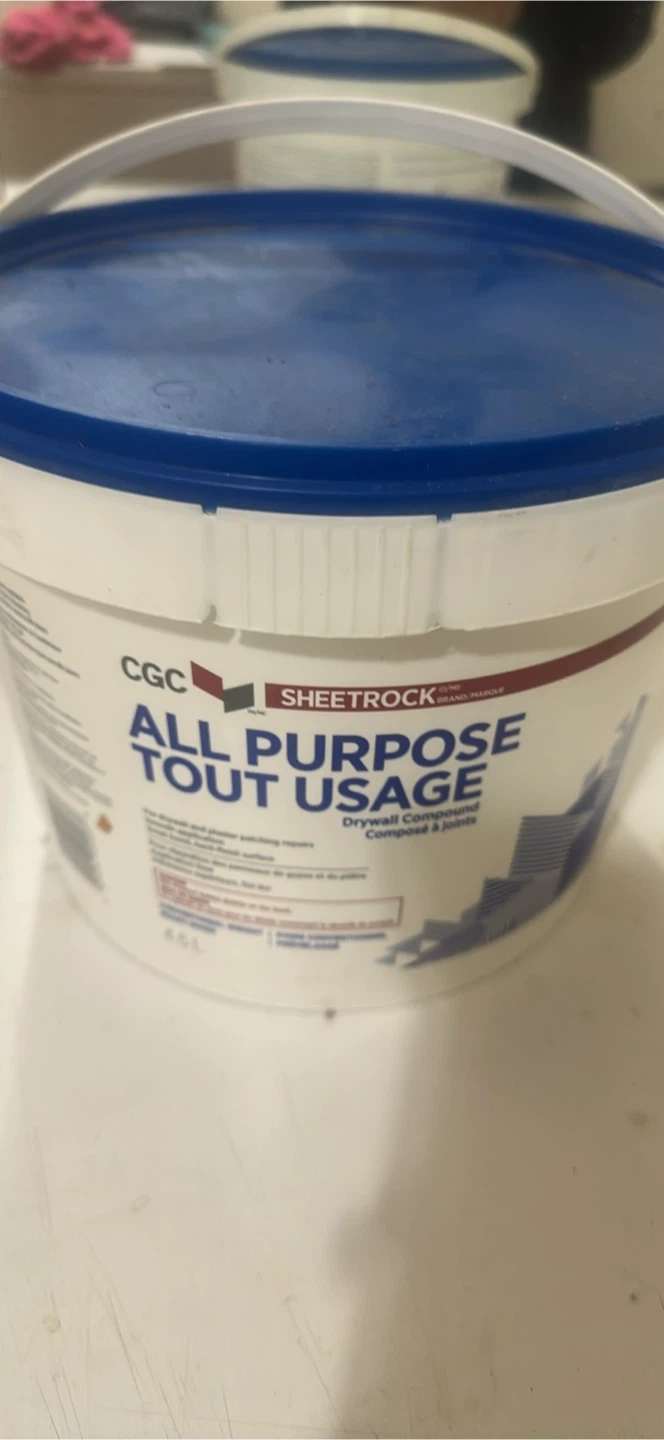 60Move out sale!! Check other listings as well! Selling a 4.5L bucket of CGC Sheetrock All Purpose Drywall Compound. Perfect for drywall and plaster patching repairs. Sealed and never opened!! It offers a smooth application and excellent adhesion. Ready-mixed for your convenience!
