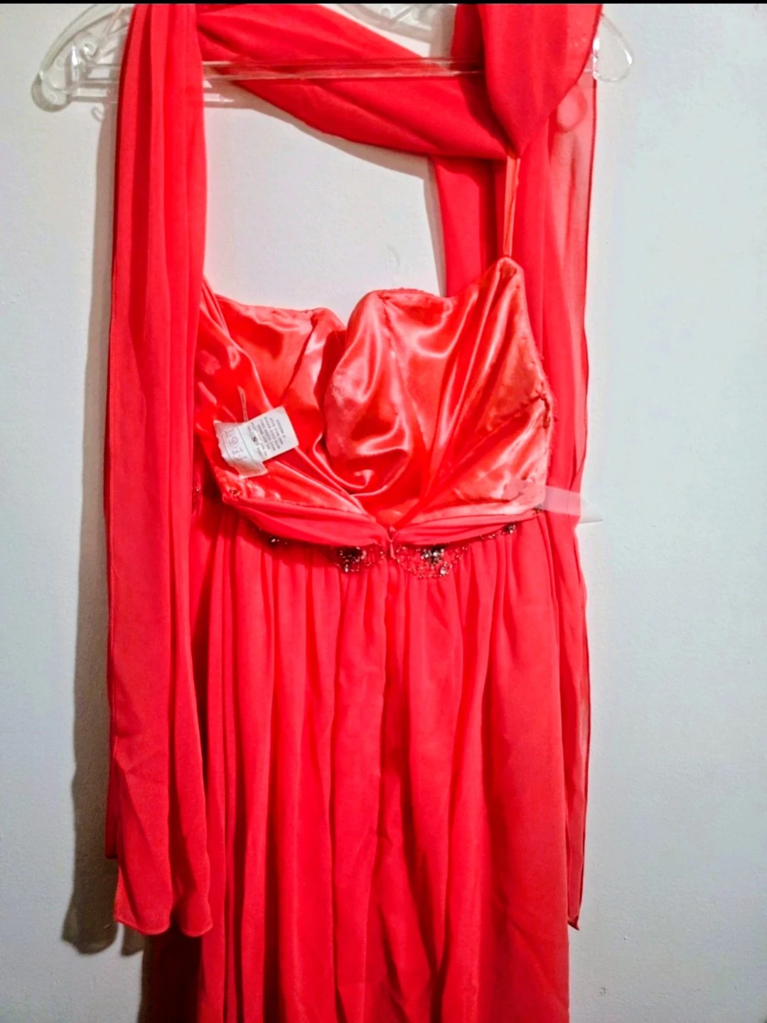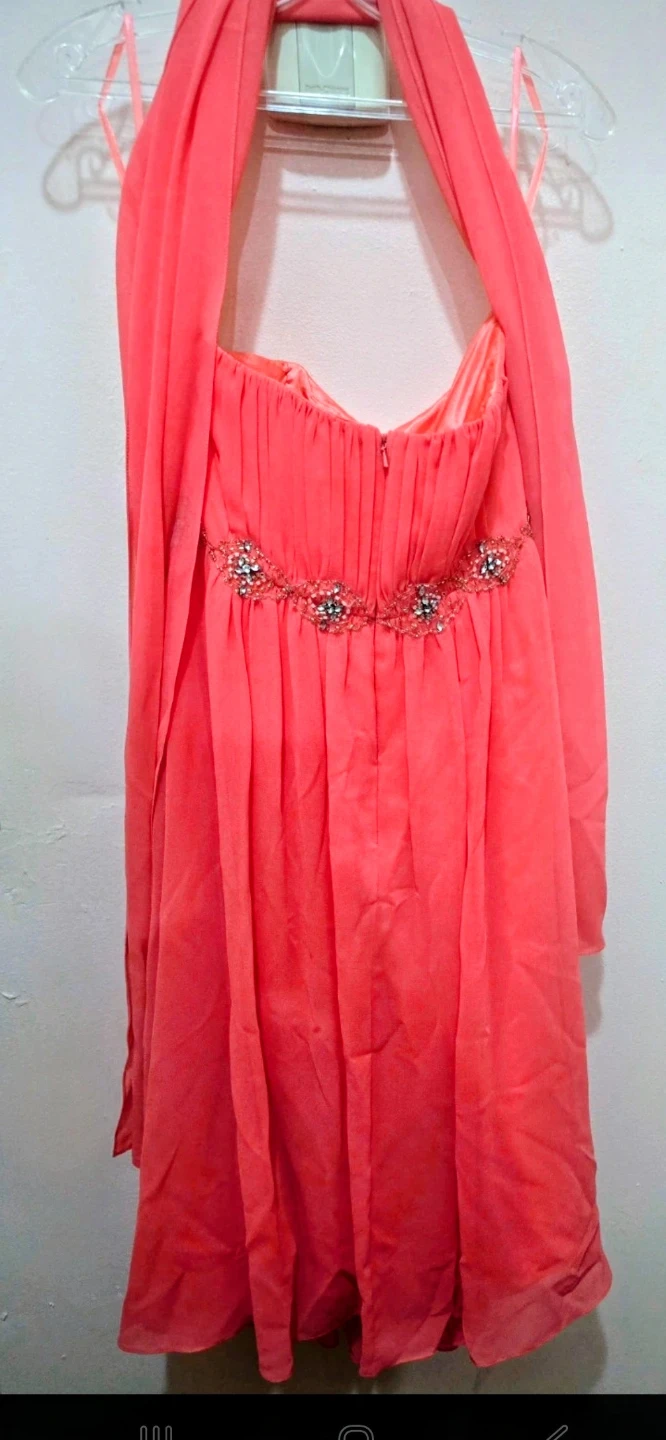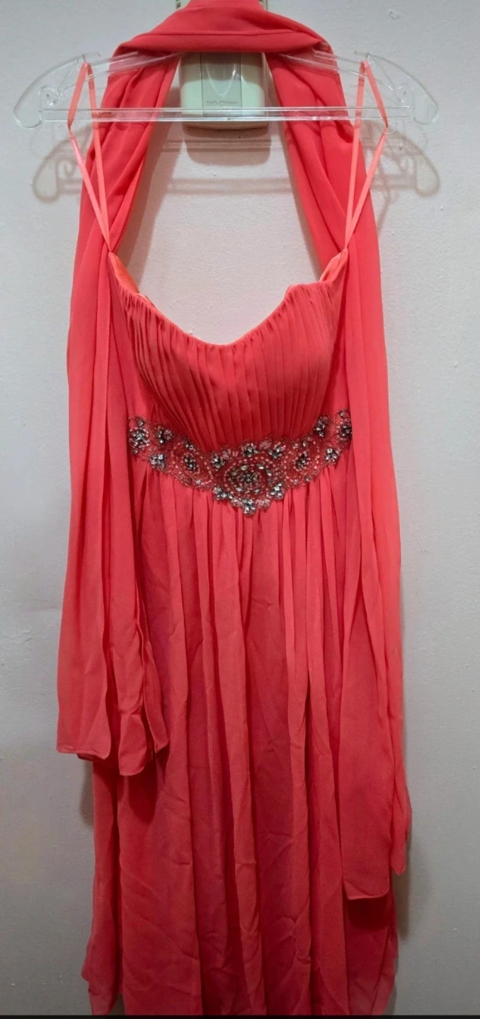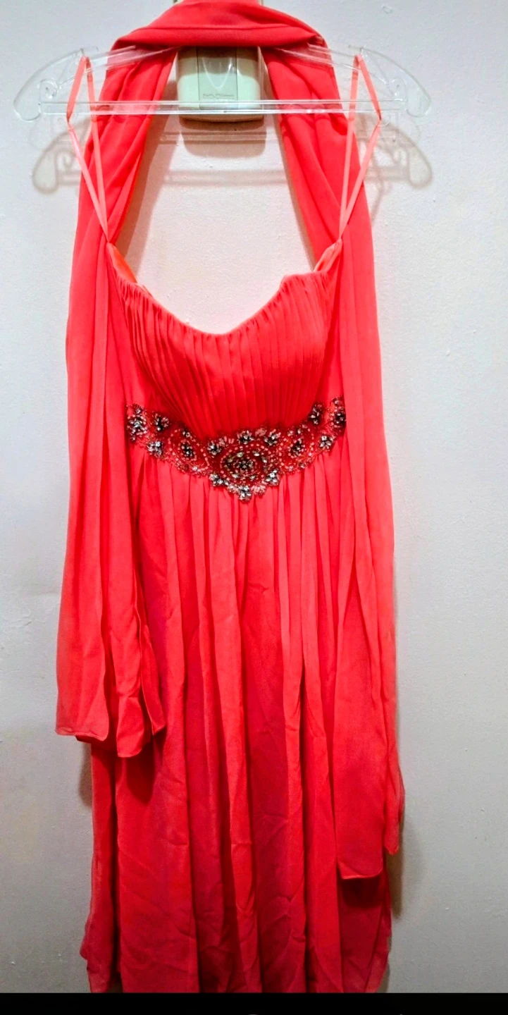 Stunning and vibrant coral formal dress from the brand Fiesta.