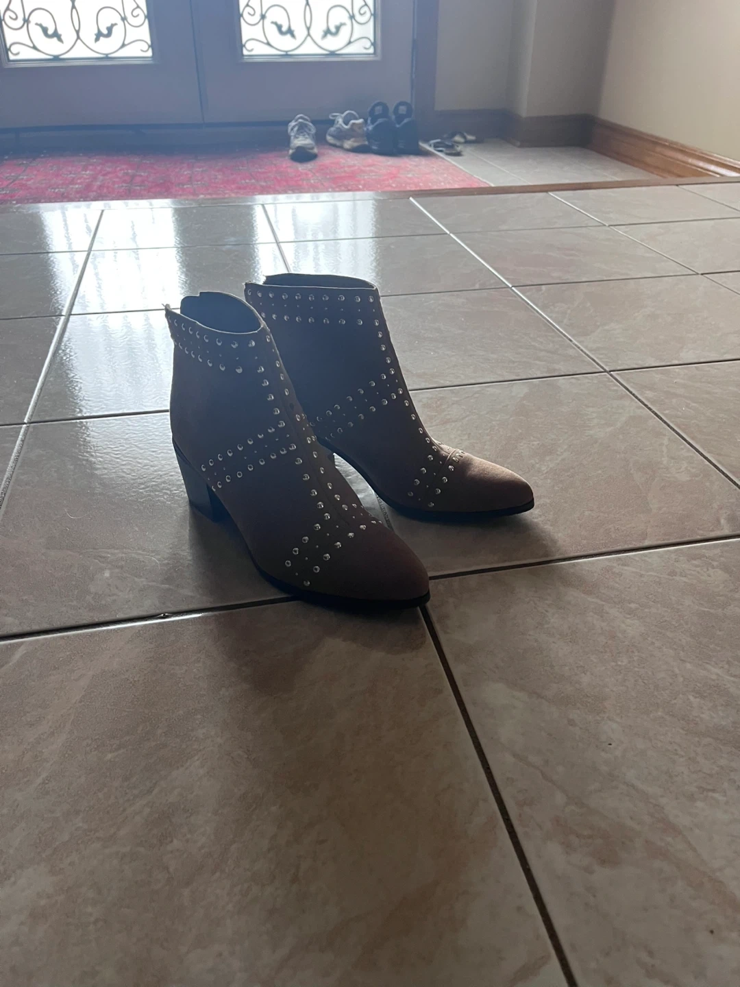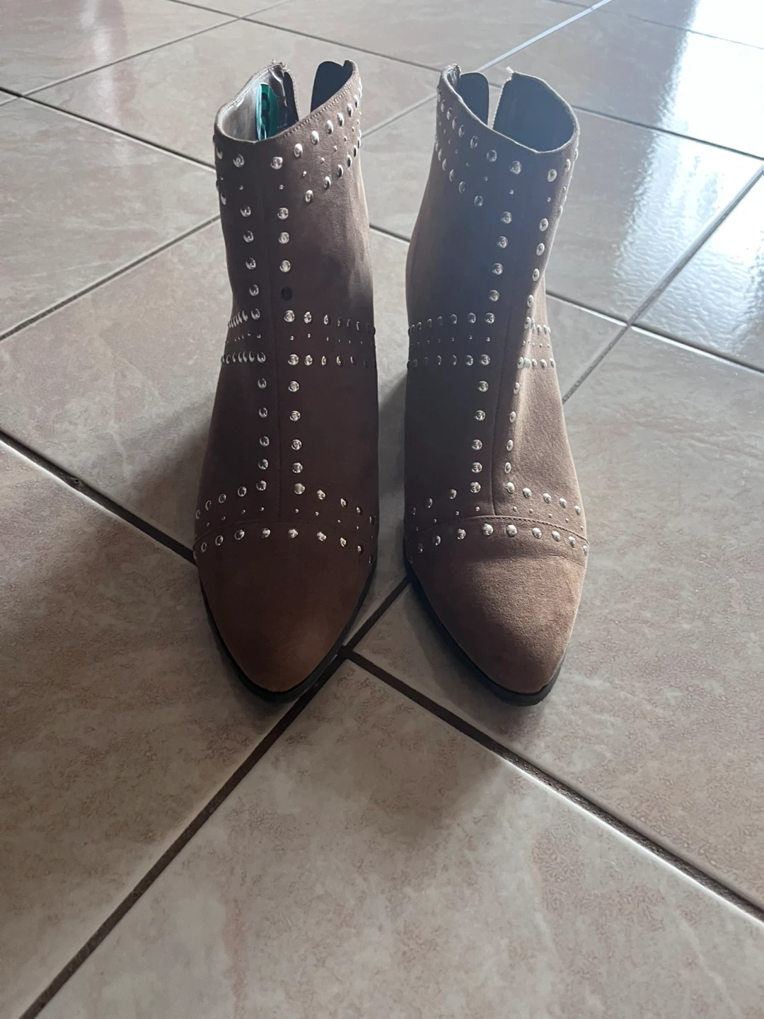 Stylish brown ankle boots from Dolce Vita! These boots feature a unique studded design that adds a touch of edginess to any outfit