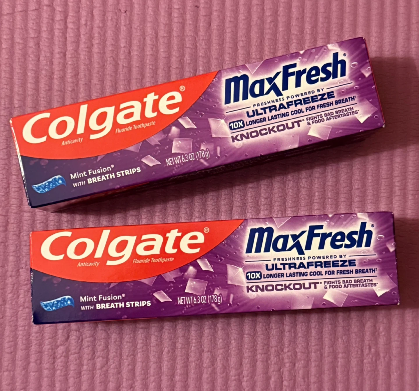 [✨Brand New✨]Two tubes of Colgate Max Fresh toothpaste with Breath Strips. Freshness powered by Ultrafreeze Knockout. Fights bad breath and food aftertastes. Mint Fusion flavor.
