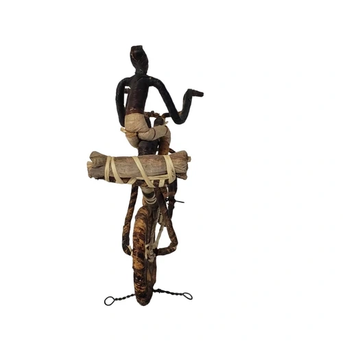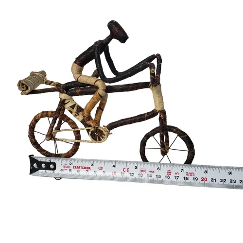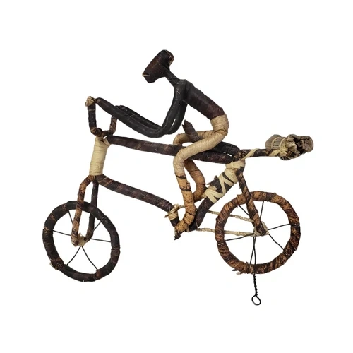 Vintage African Figure Bicycle Art Handmade Banana Fiber REED