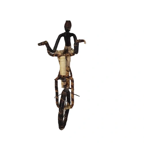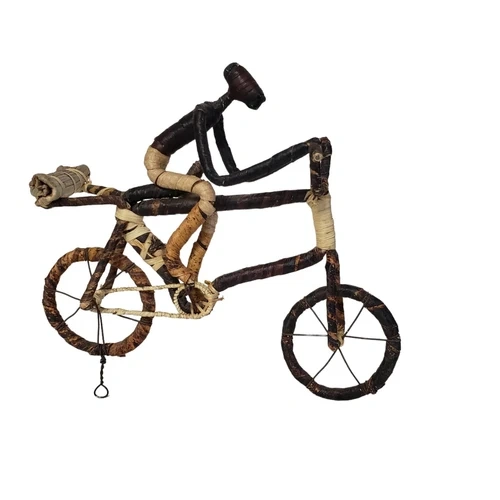 Vintage African Figure Bicycle Art Handmade Banana Fiber REED