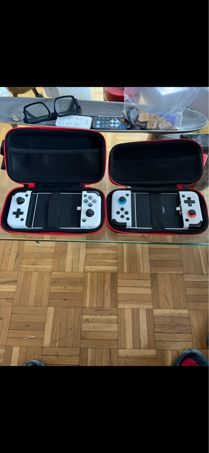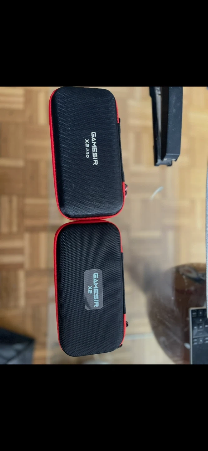 Two Gamesir X2 Pro controllers for mobile gaming. These controllers are in cases and ready for use. They feature a white and black design.