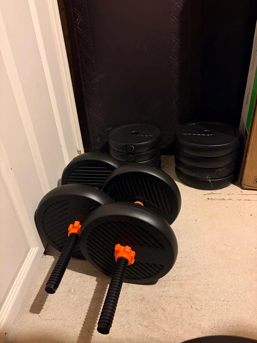 Selling an adjustable dumbbell set that's in great condition! The set comes with multiple weight plates, allowing you to customize the weight to your liking.