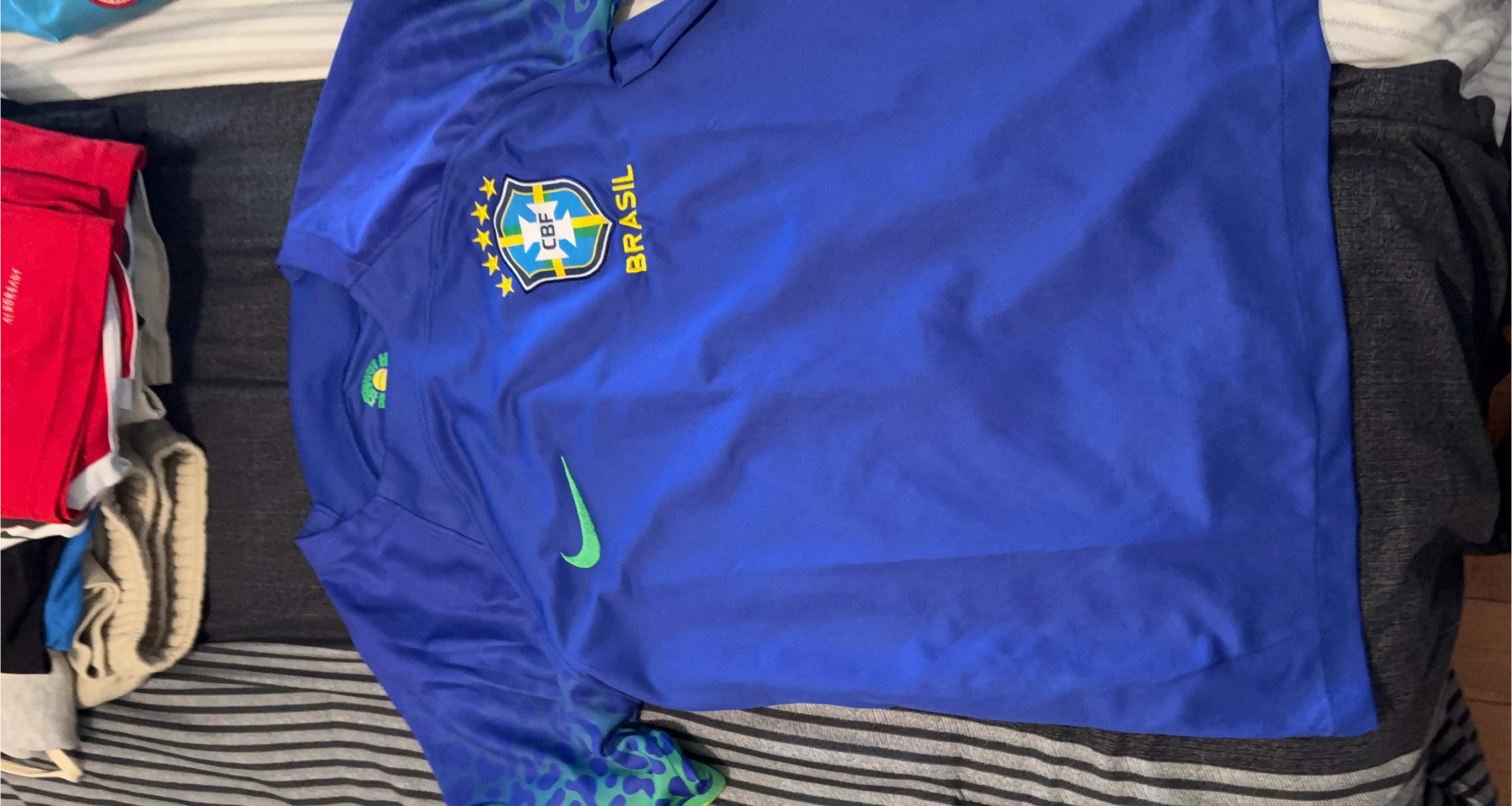 Selling a Nike Brazil soccer jersey in blue! It features the Brazil team logo and the Nike swoosh. A great jersey for any soccer fan!