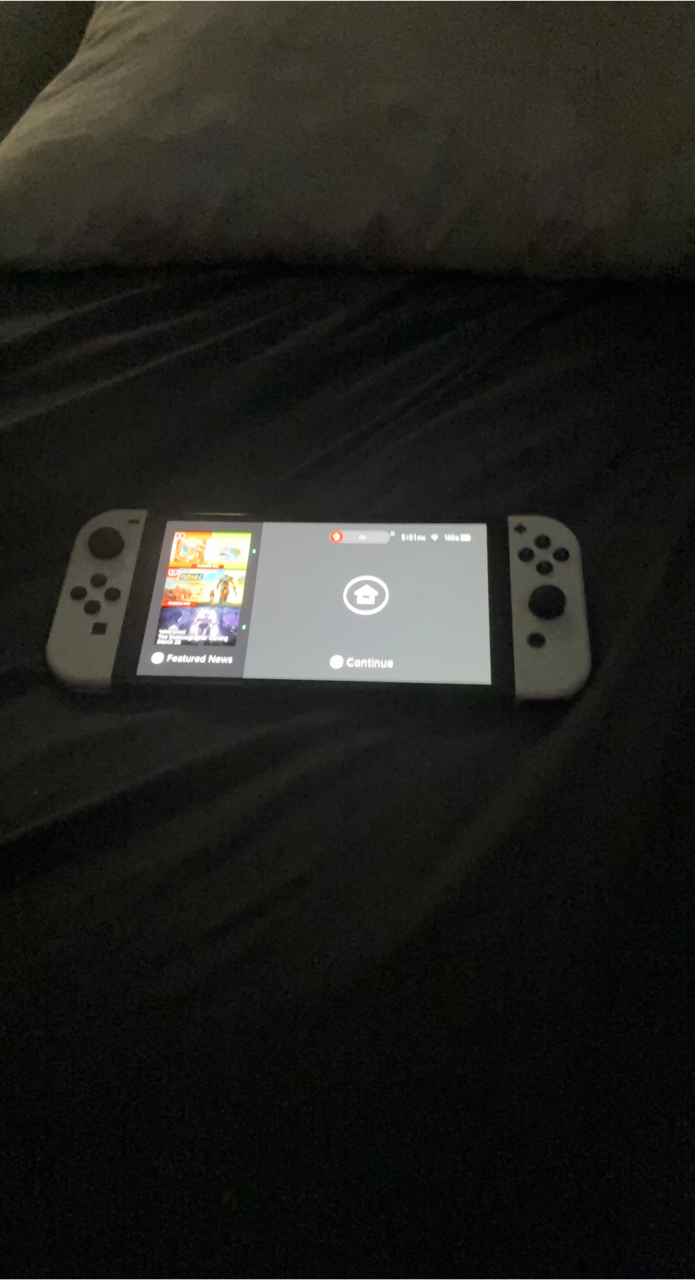 White Nintendo Switch OLED model. It's in excellent condition with minimal signs of use. Includes the console, Joy-Cons, and charging cables.