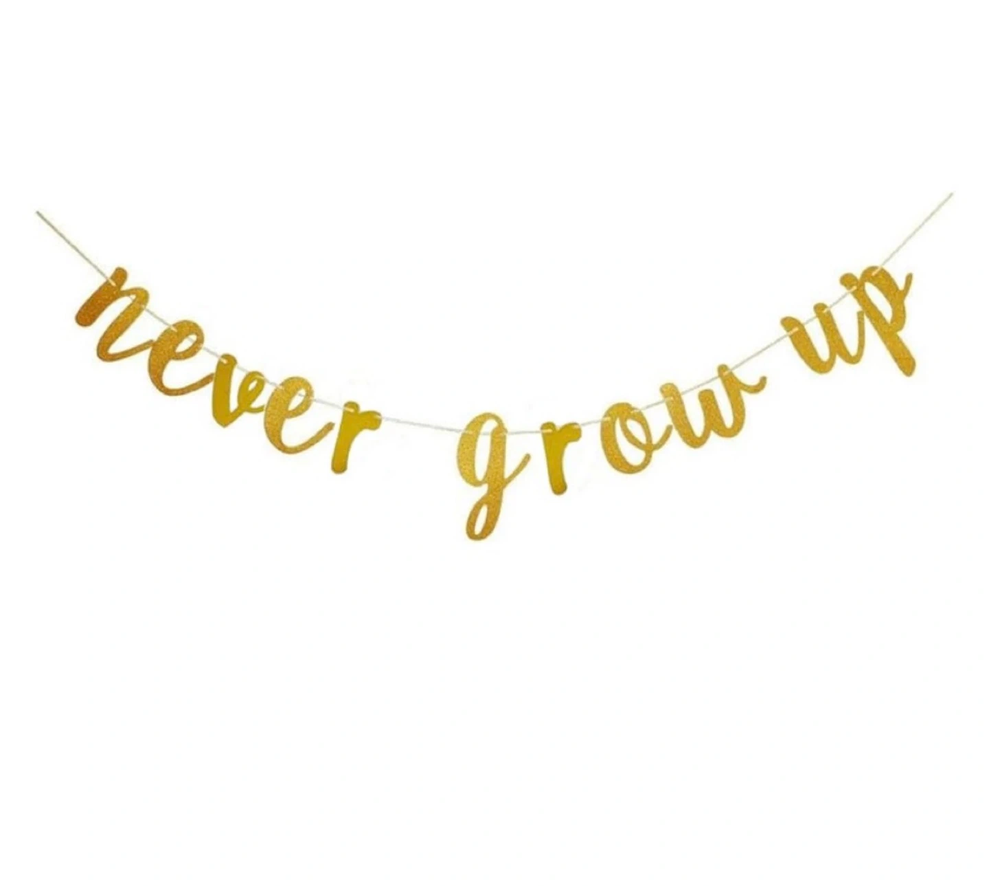 Never Grow Up Banner, Gold Paper Kids Baby Birthday Party Sign Supplies, Birthday Party Decorations