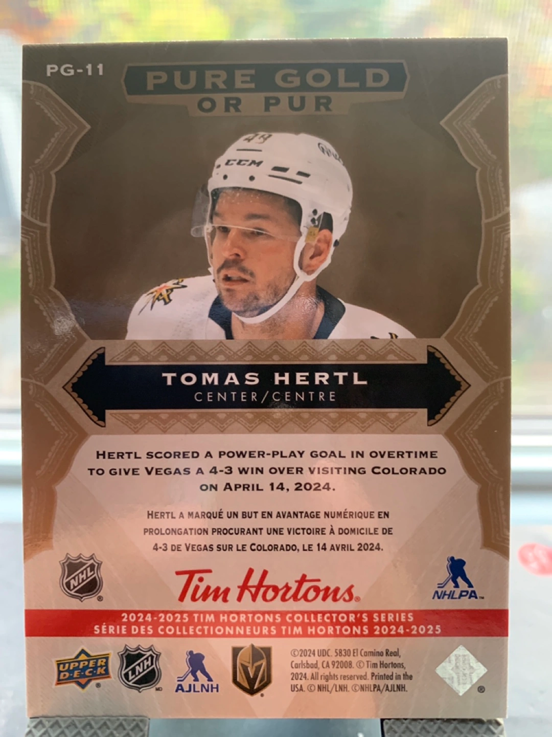 Hockey card. Tomas Hertl, Vegas Golden Knights. Pulled today. Mint condition. Comes with free protective card sleeve. Free delivery or pickup.