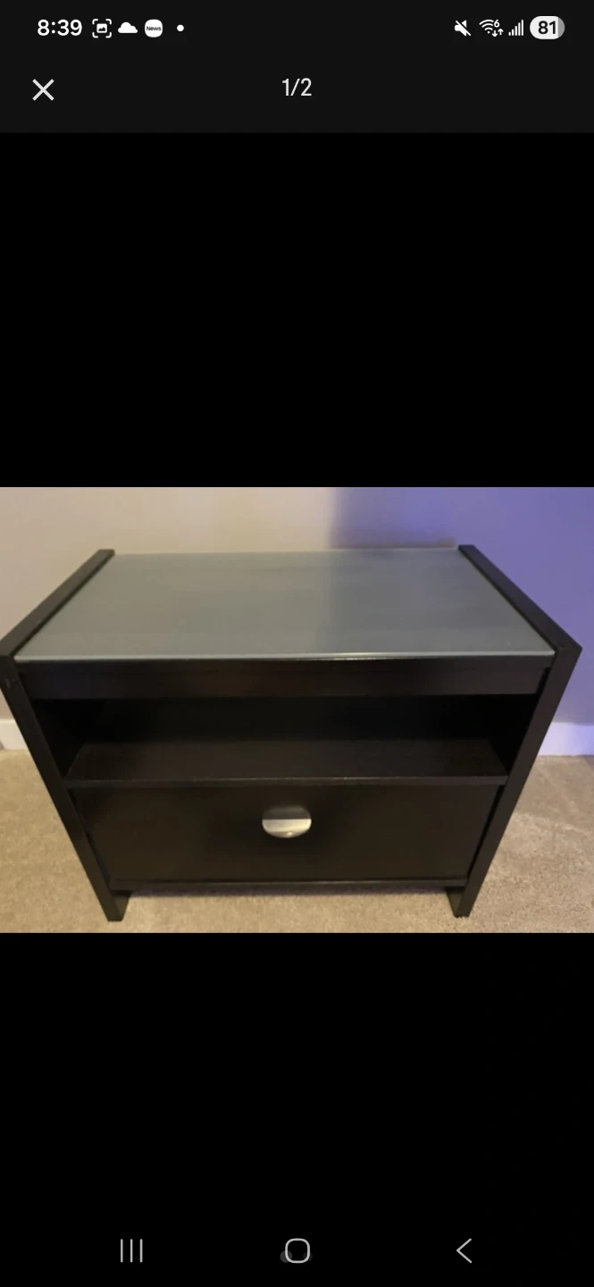 Sturdy Nightstand with glass top and drawer