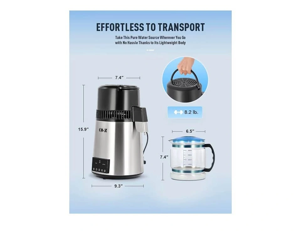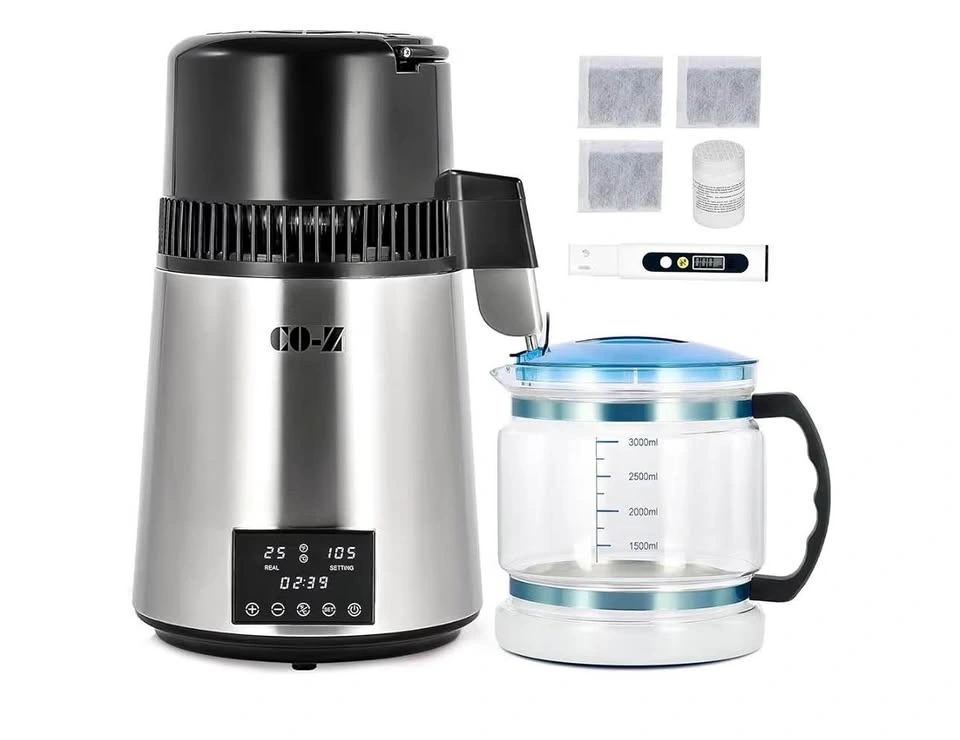 CO-Z 1750W Water Distiller Countertop with Dual Temperature Display Timer, 1.1 Gal Distilled Water Maker Machine for Home Office. Let me know if you're interested!