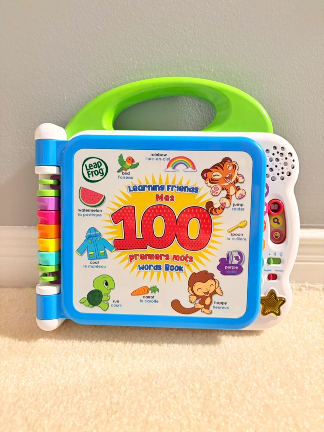 This Leap Frog Learning Friends book teaches 100 French and English words. It's designed to help young children learn vocabulary with colourful illustrations. It's great for toddlers learning new languages! Pick up in the Yonge and Finch area.