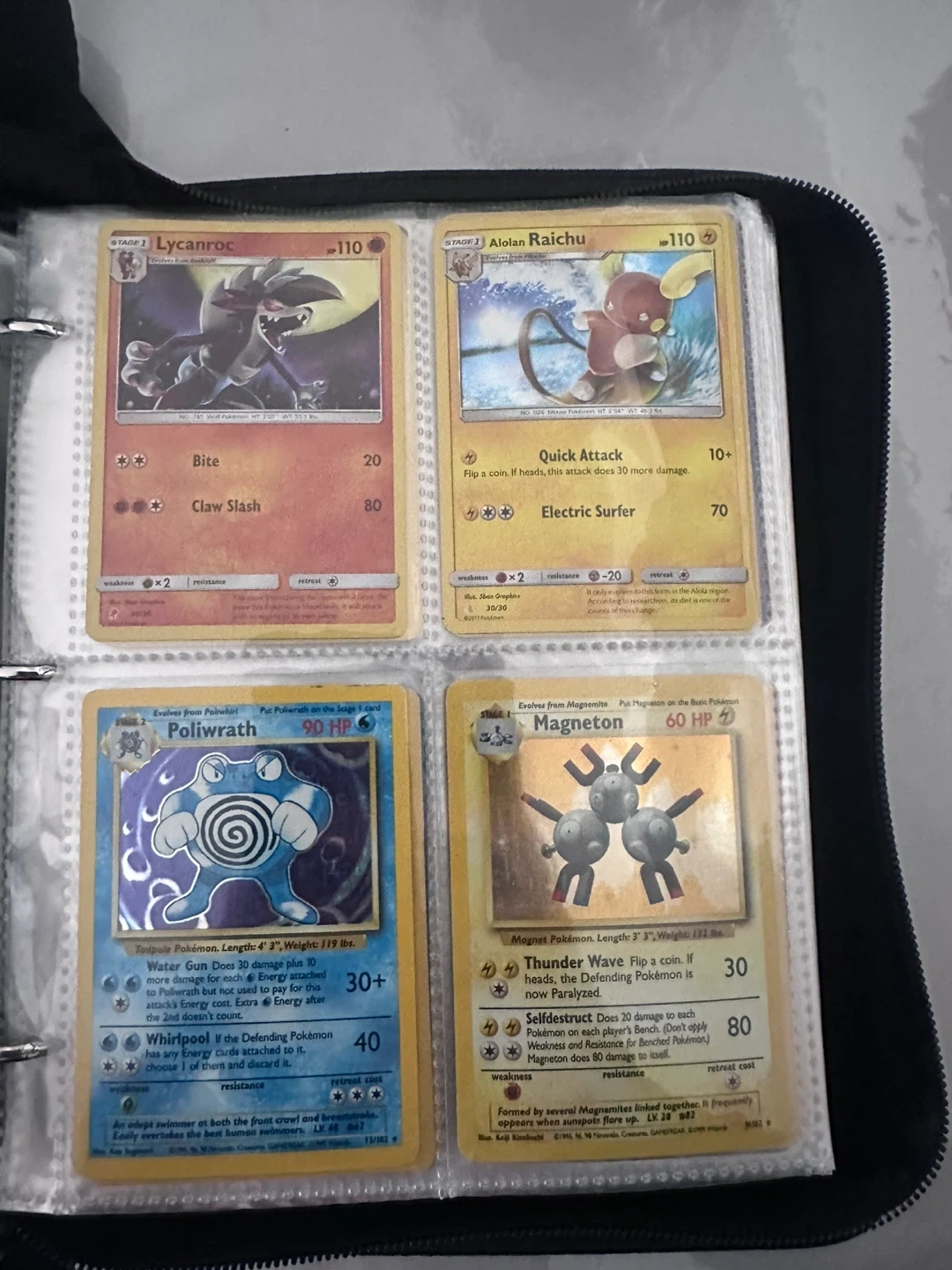A binder full of various Pokemon trading cards. Includes Pokémon like Charizard, Pikachu, Raichu, and others. Cards are in a protective binder. Theirs many more card then shown on the pics but can upload due to picture limits