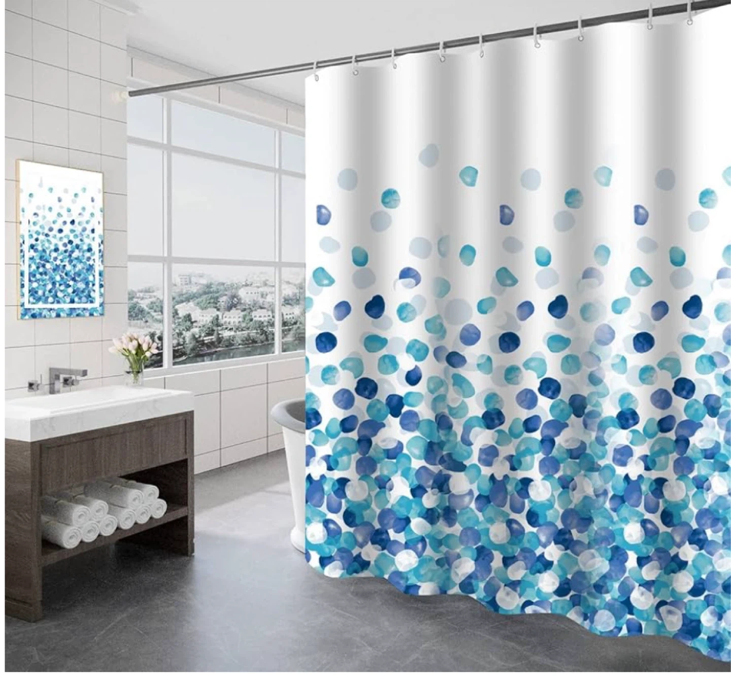 I’m selling a beautiful set of a shower curtain with a blue polka dot design and bathmat blue.