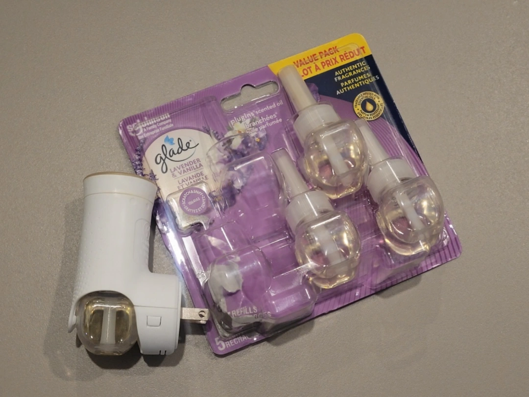 Glade PlugIns warmer (with 1 refill connected, half used) and 3 refills. Lavender & Vanilla scent.