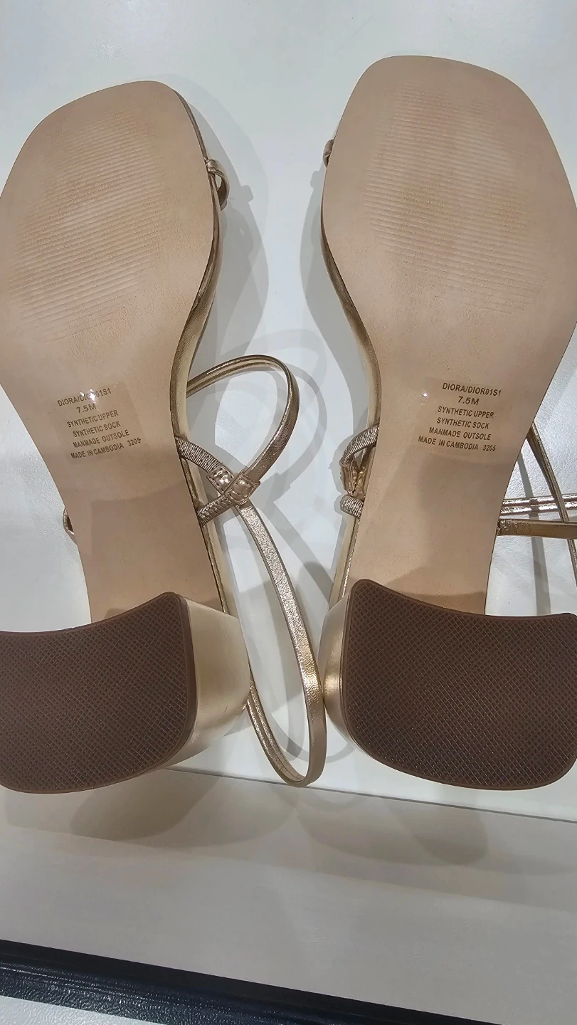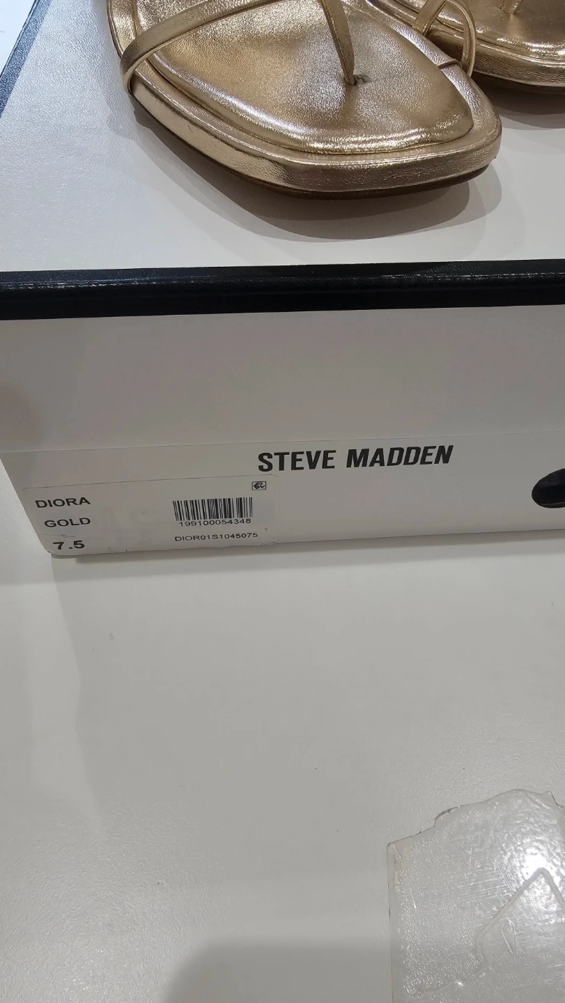 These Steve Madden Diora sandals feature a rose gold synthetic upper and manmade outsole. They're a size 7.5M. Perfect for dressing up any outfit!