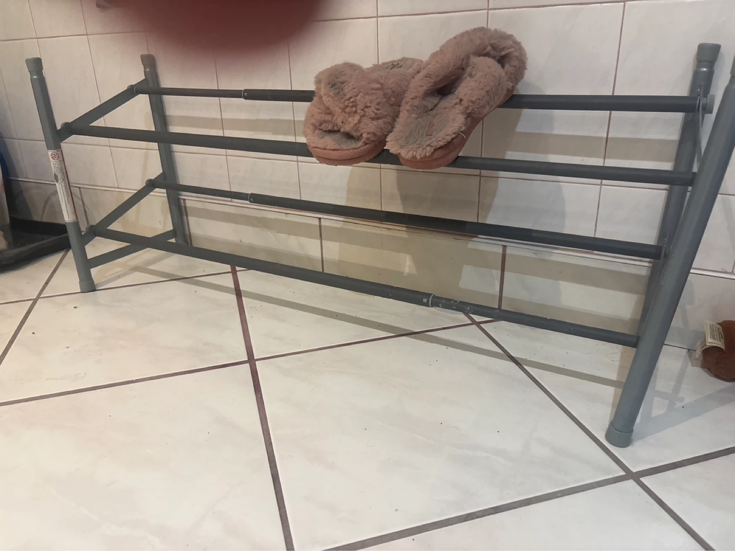 A simple two-tier shoe rack, great for organizing footwear. Its metal construction offers durability for everyday use. The tiered design helps keep your entryway tidy.