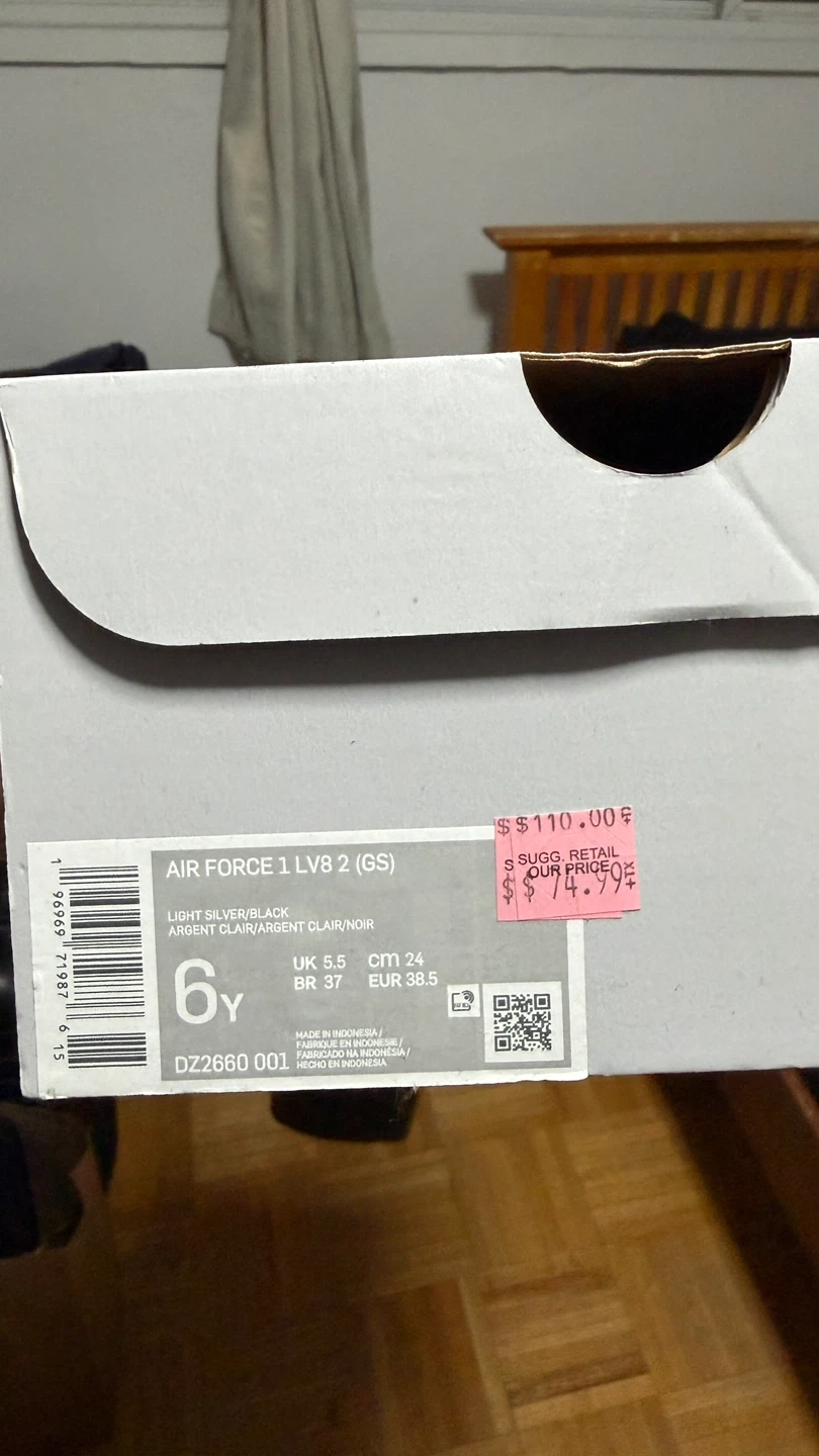 Selling a pair of Nike Air Force 1 LV8 2 (GS) in size 6Y. The colour is light silver/black. The box is included!