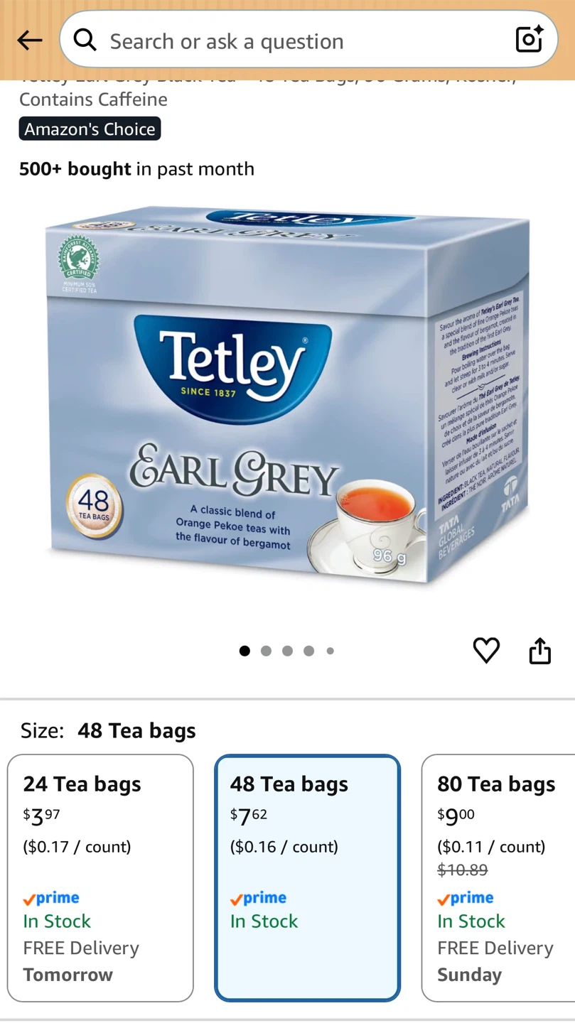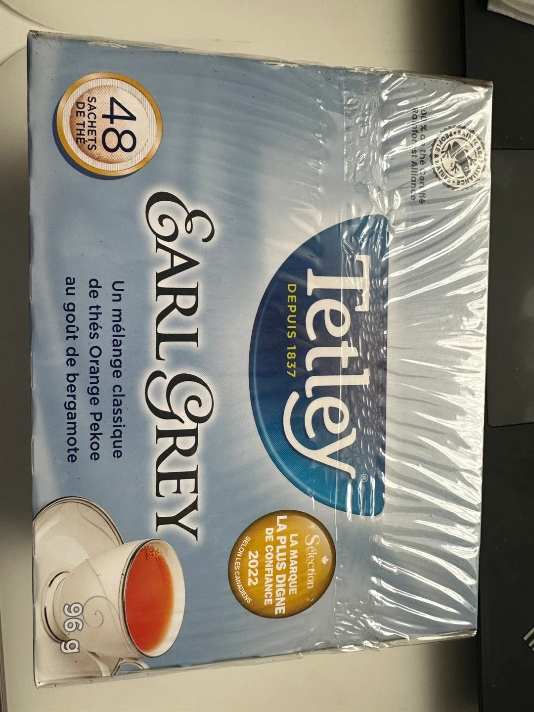 Tetley Earl Grey tea bags. A classic blend of Orange Pekoe teas with the flavour of bergamot. Contains caffeine. 96g.
