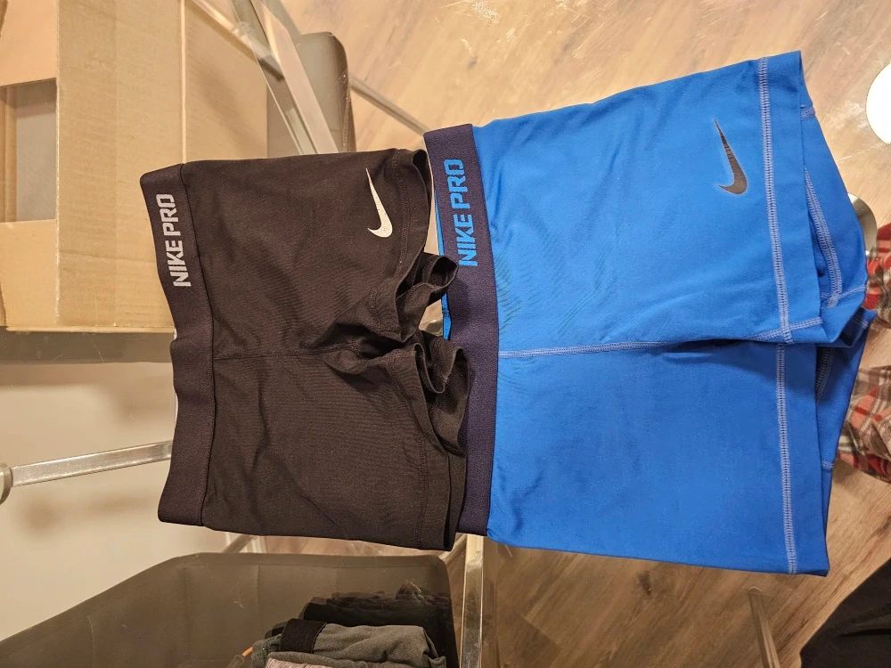Selling a mix of athletic shorts! There are Nike Pro shorts in blue and black, and Athletic Works shorts in various colours and patterns. All are size small and made with a soft, stretchy material, perfect for workouts or everyday wear
