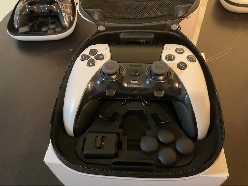 Brand new, open box Sony DualSense Edge wireless controller for PlayStation 5, PC, Mac, and mobile devices. In excellent condition with no sticky buttons or discolored rear grips. Includes the controller, carrying case, box, and all original accessories. You can test the controller before you buy. Experience personalized control with remappable buttons, swappable stick caps, adjustable stick sensitivity, and customizable trigger depth. The swappable back buttons can be configured for quick access to game-changing actions. The carrying case allows for charging and organized storage of components, and it comes with a USB-C braided cable and connector housing. Features adaptive triggers and haptic feedback for immersive gameplay (when supported by game). Includes: Dualsense Edge Wireless Controller – Midnight Black, 2 Standard Caps (Attached), 2 High Dome Caps, 2 Low Dome Caps, 2 Half Dome Back Buttons, 2 Lever Back Buttons, Connector Housing, Carrying Case, Instruction Manual. Feel free to message if you have any questions!