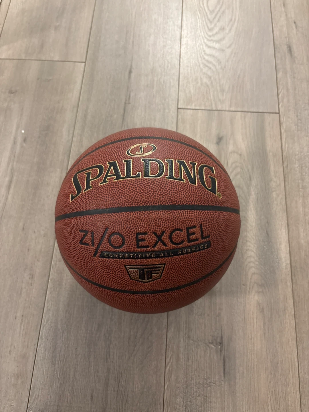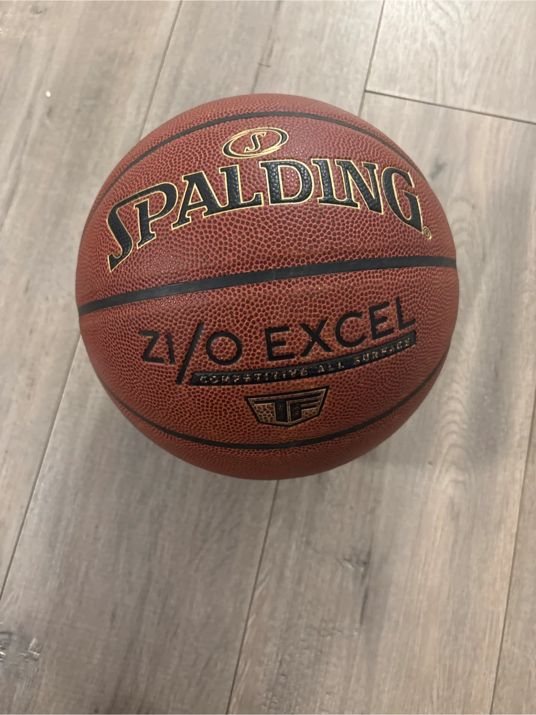 This is a Spalding Zi/O Excel basketball. It's designed for competitive play on all surfaces. Get ready to hit the court!