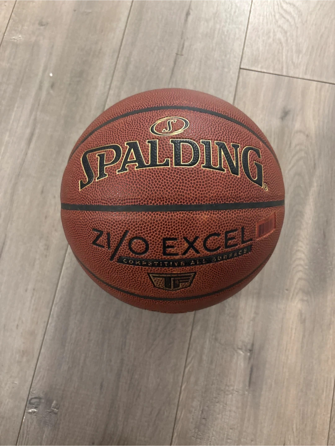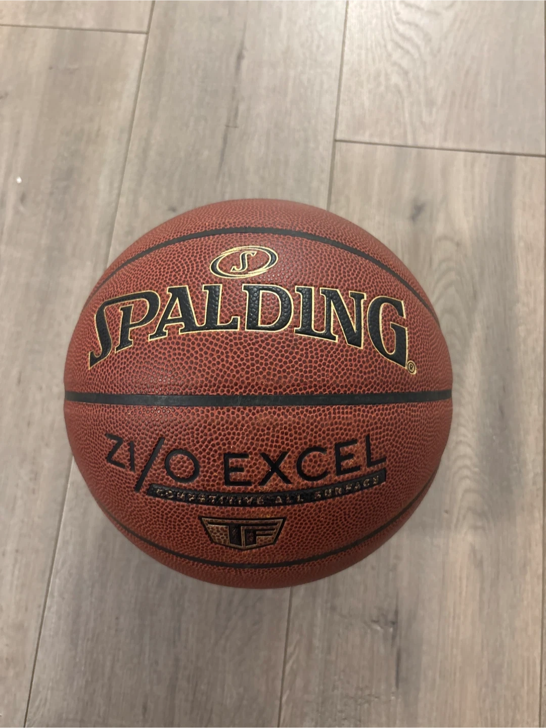 This is a Spalding Zi/O Excel basketball. It's designed for competitive play on all surfaces. Get ready to hit the court!