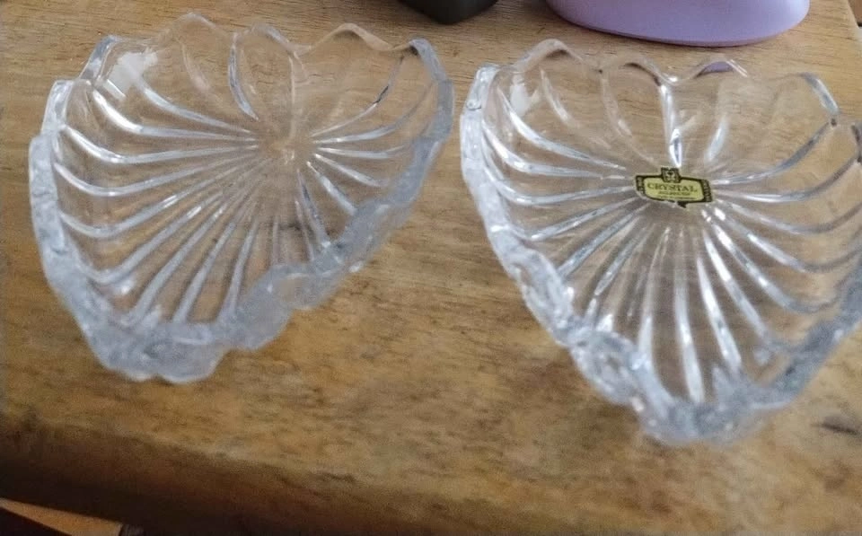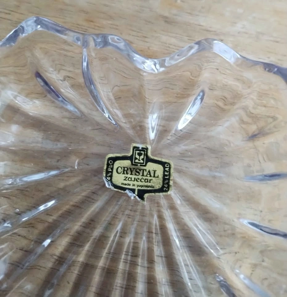 This is a vintage heart shaped crystal trinket dish made by Zajecar, a company from Yugoslavia. The label indicates that it is 24% lead crystal. Pickup at Main Street Subway Station or Danforth GO Station.
