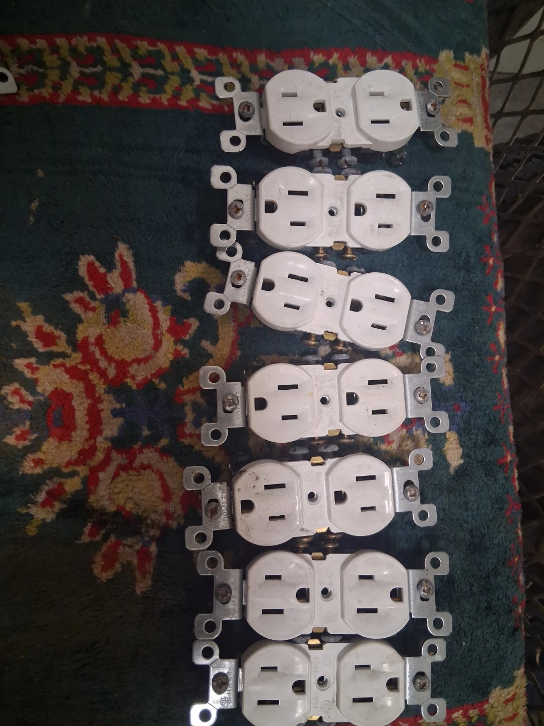 This is a lot of 7 white Leviton duplex receptacles. They are standard 2-prong outlets. These are great for any home renovation or electrical project!