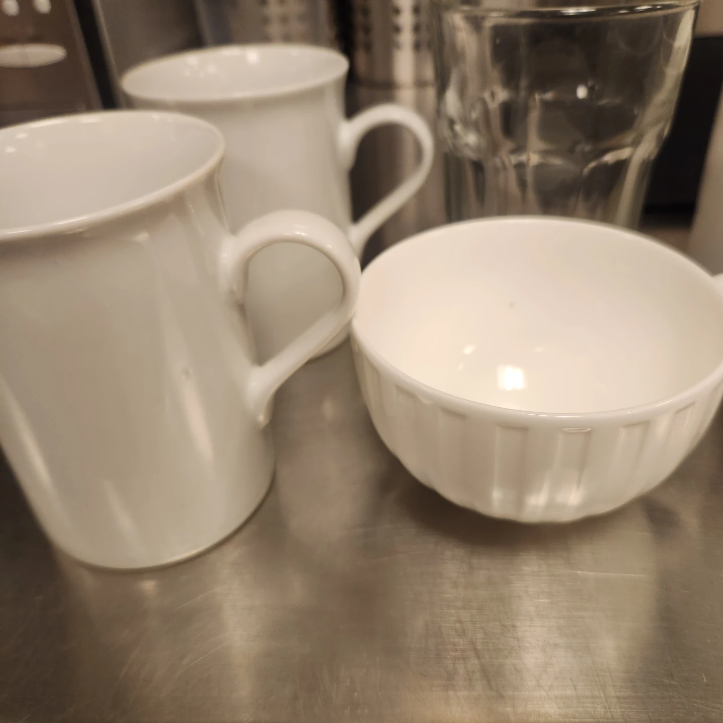 White Ceramic Mugs and Glass