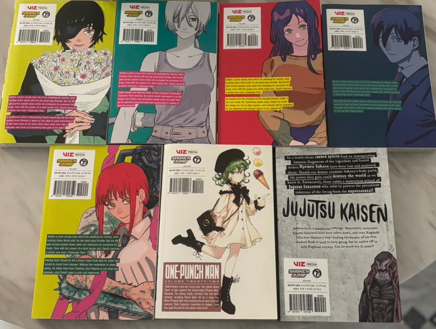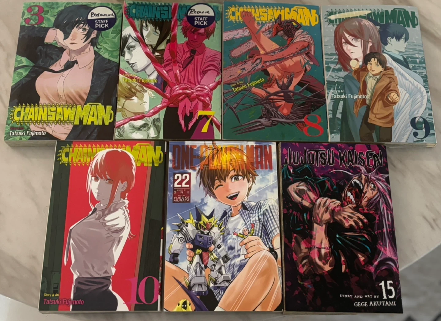 31Cash only CSM VOL 3,7-10 OPM VOL 22 JJK VOL 15 Don’t have the entire csm collection unfortunately but these are in pristine condition no stains or damage whatsoever I mainly read manga on my phone now so I have no need for these