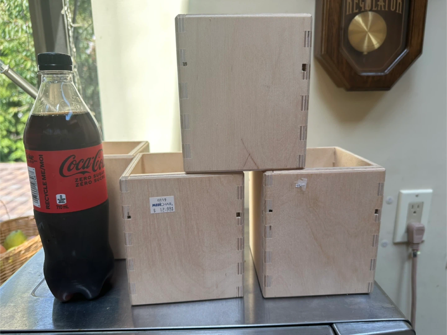 Sturdy and solid wood chair risers. Great for someone who has mobility issues getting up from a low chair. Can also be used with a footed bed. Barely used, excellent condition. $30 for all. Pop bottle (710 ml) for size reference. Pick up in Ladner Cross posted