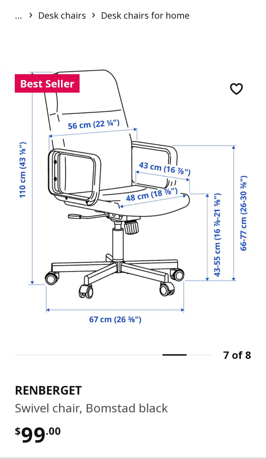278Price negotiable, pick up only near Peanut plaza around 20 July or must go by July 17th week This swivel chair has adjustable tilt tension that allows you to adjust the resistance to suit your movements and weight. To adjust the tilt tension, turn the knob under the seat to increase or decrease the resistance. The shape of the armrests provides good support and helps you find a good sitting position. The stitching pattern on the backrest gives the chair an elegant and clean look. You sit comfortably since the chair is adjustable in height. The safety casters have a pressure-sensitive brake mechanism that keeps the chair in place when you stand up, and releases automatically when you sit down. Soft yet hard-wearing coated fabric is easy to wipe clean.