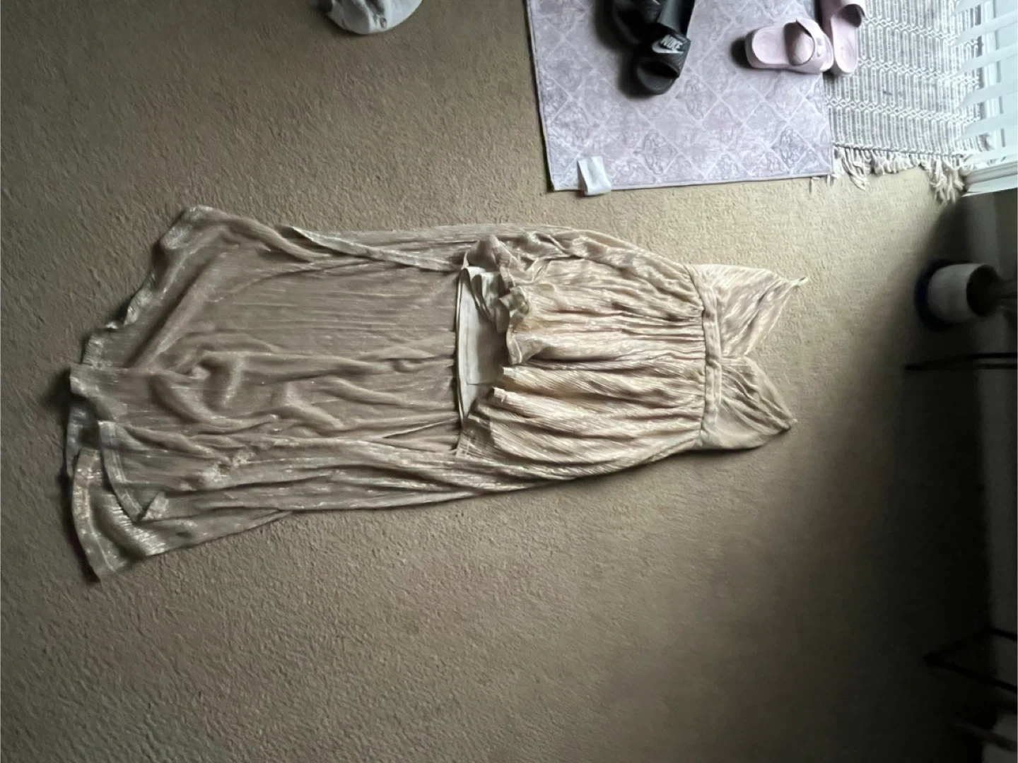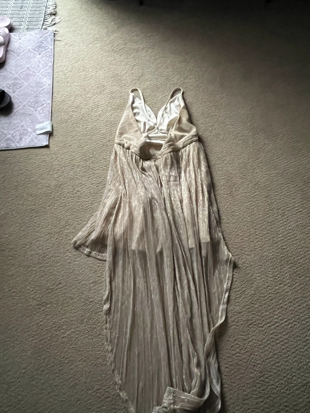 15Selling a champagne coloured dress. It's in great condition! waterfall design as well has lots of blingy sparkles along the dress